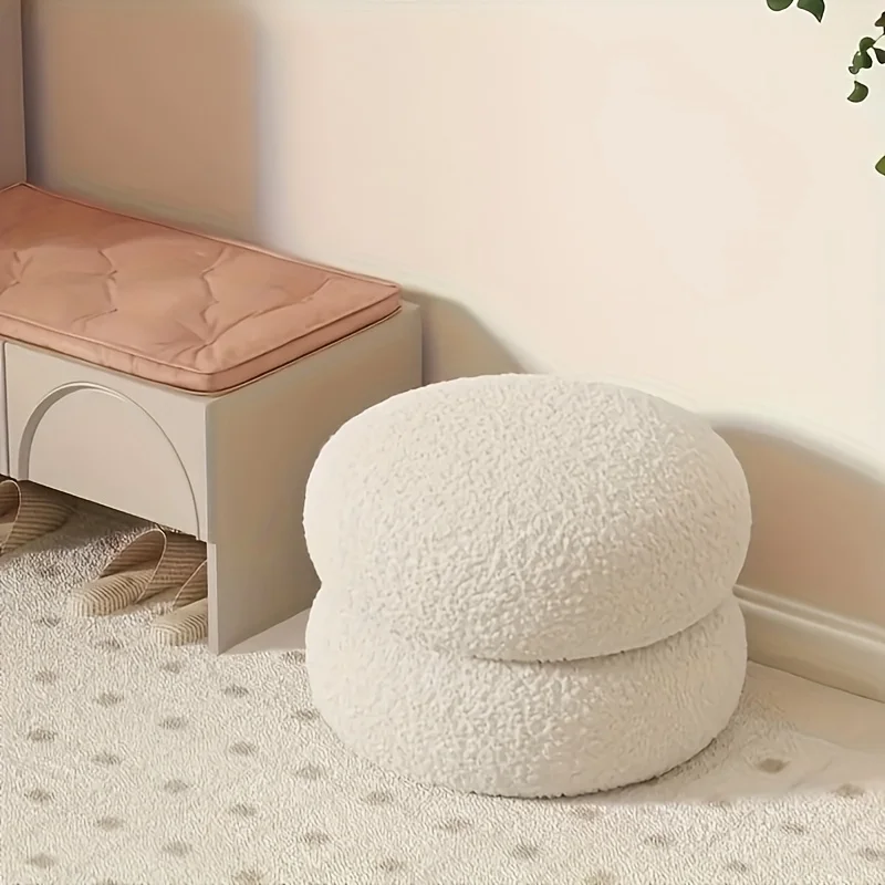 Available in 3 Colors, This Lamb Wool Round Stool/sofa Footstool/low Chair Is Perfect for Home Use,a...