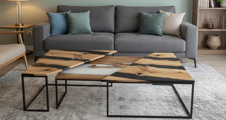 Modular coffee table in oak & epoxy resin - Contemporary design...