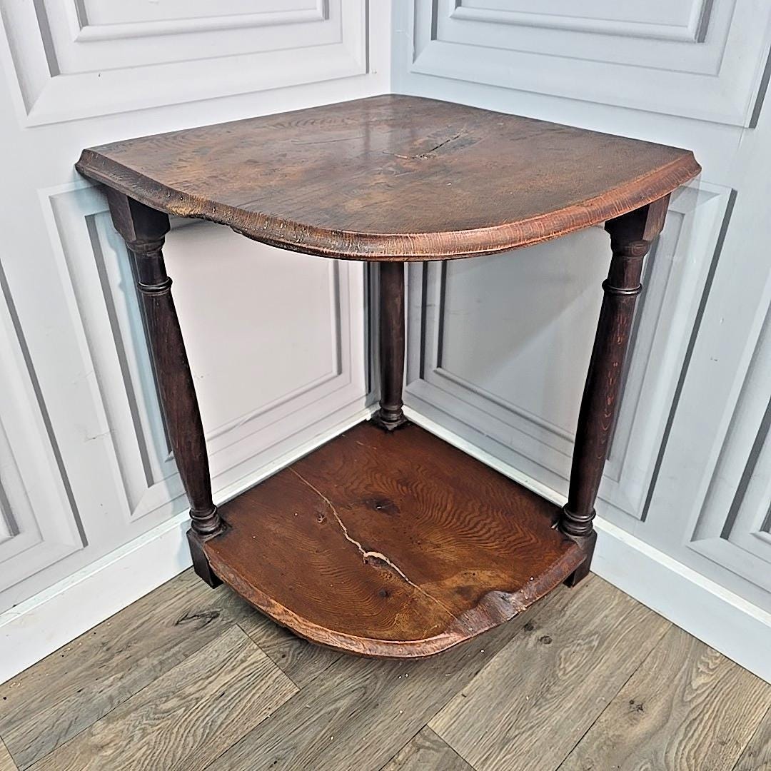 Antique Rustic Oak Corner Table Occasional Plant Stand - Solid Wood A charming antique oak corner ta...