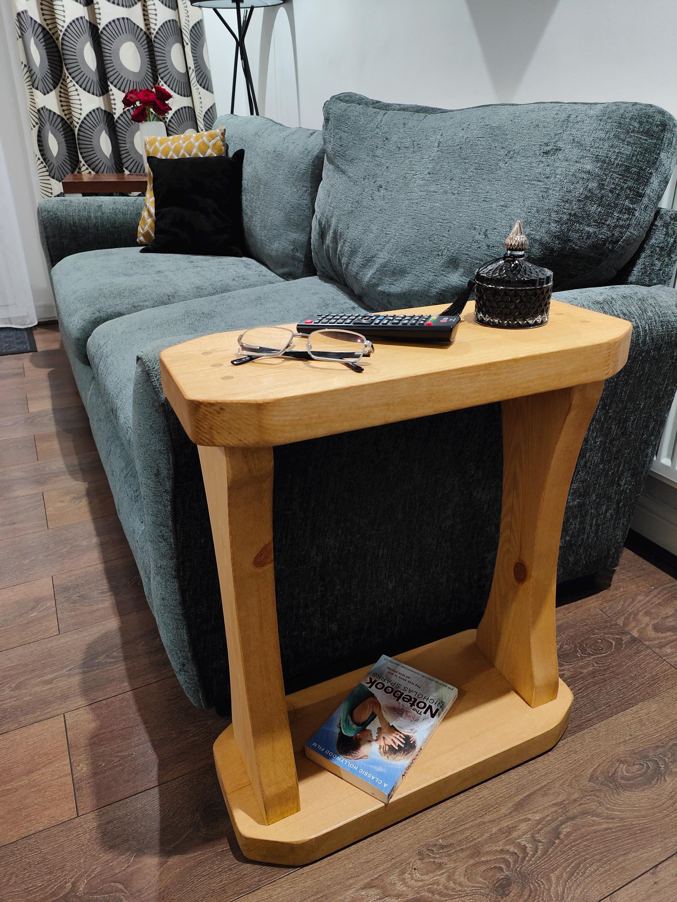 MADE IN ENGLAND This item is a handmade side/ corner / triangular / end table with one shelf. It is ...