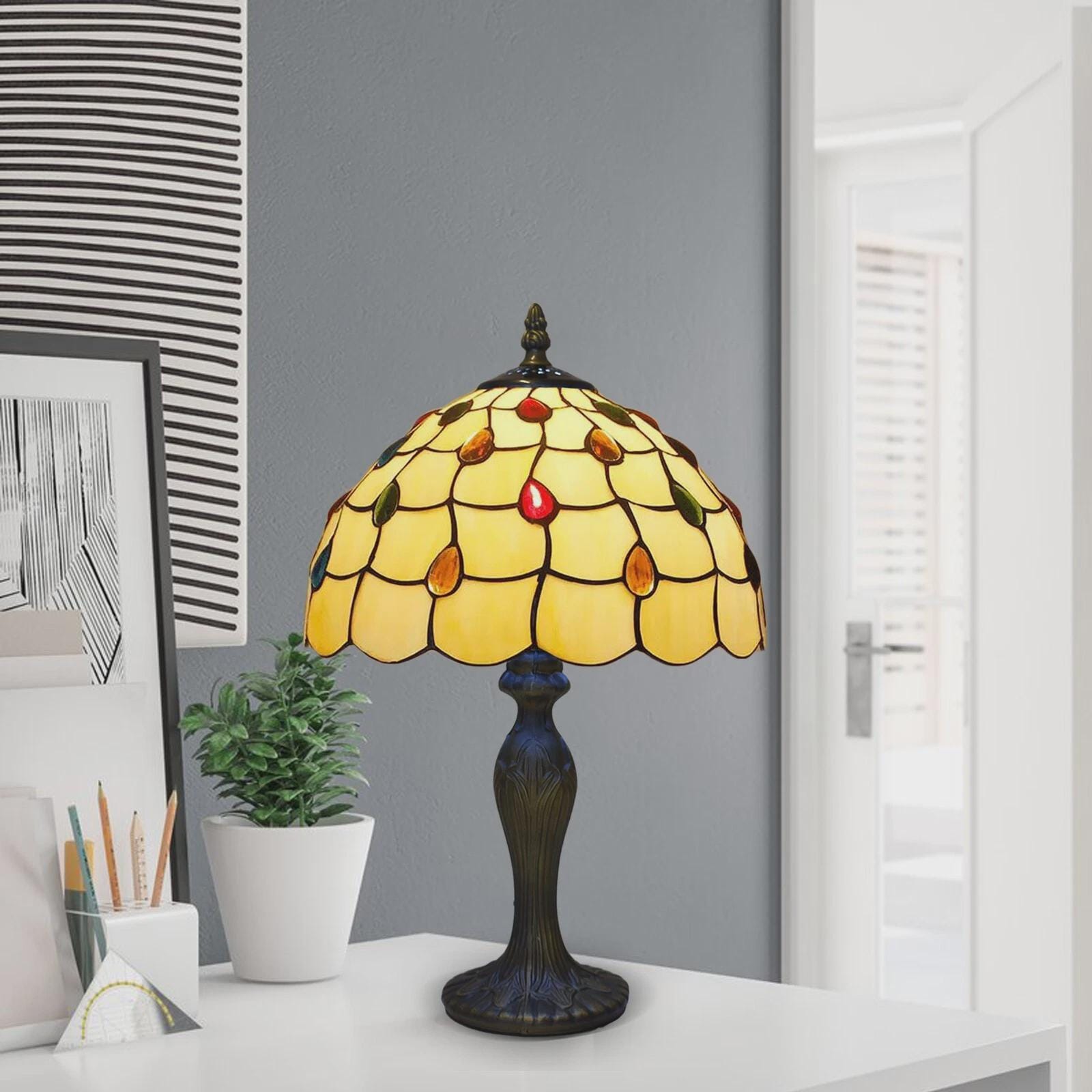 Vintage Tiffany-Style Stained Glass Table Lamp - Decorative Bedside...