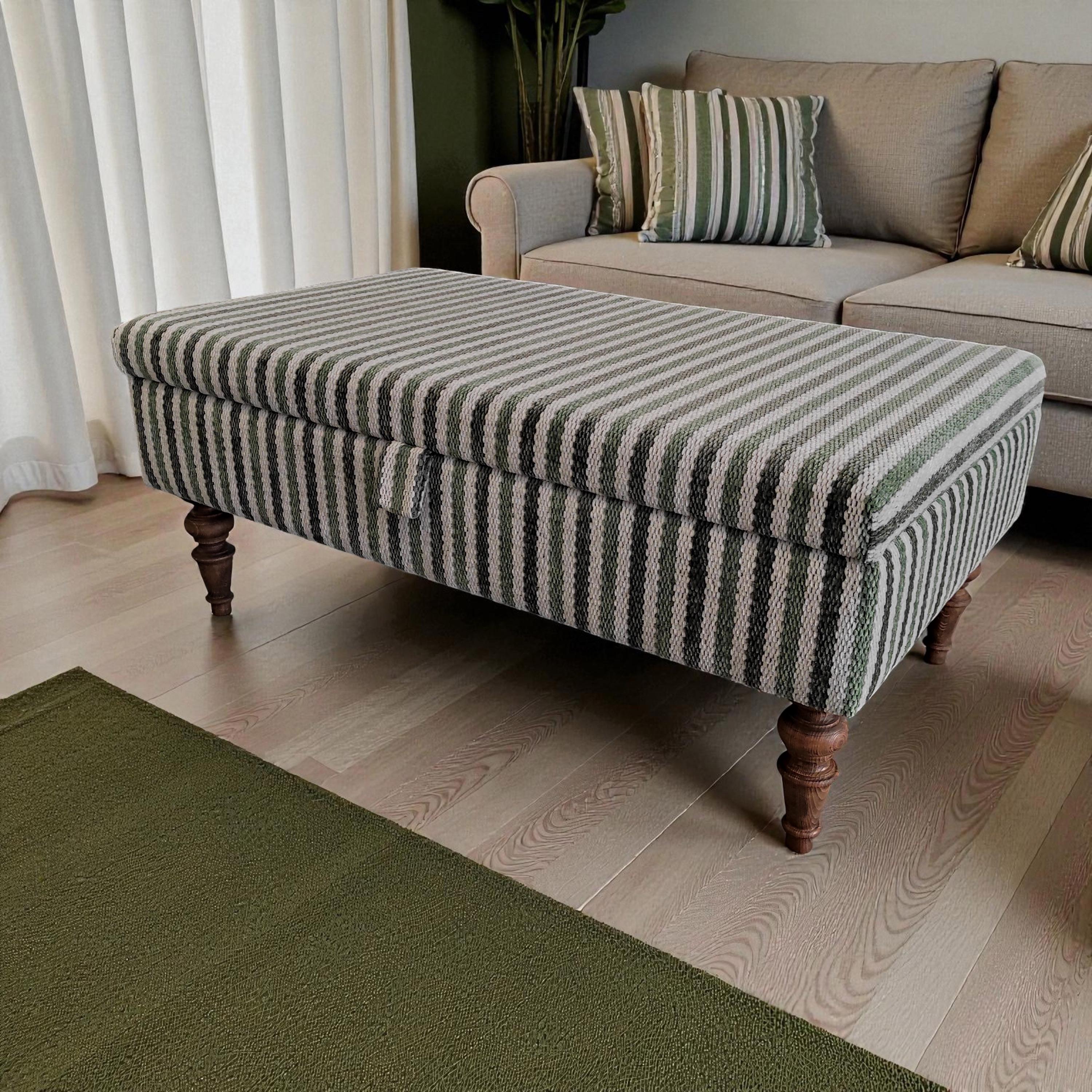 Striped Storage Ottoman Coffee Table | Handmade Upholstered Bench w...