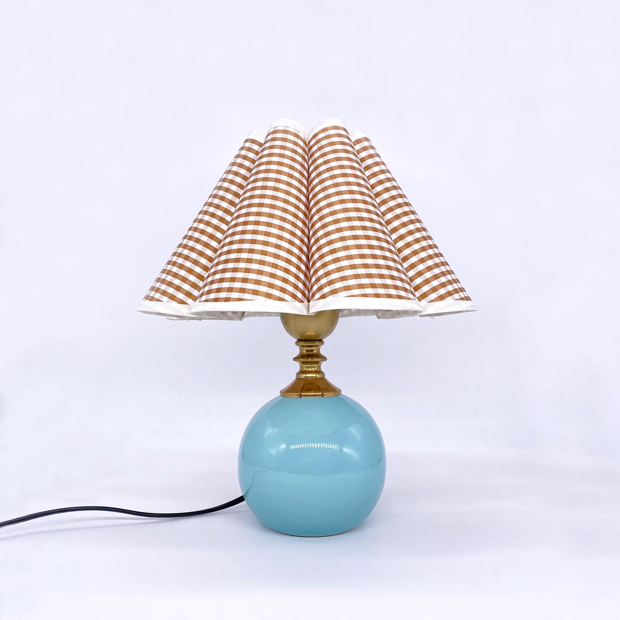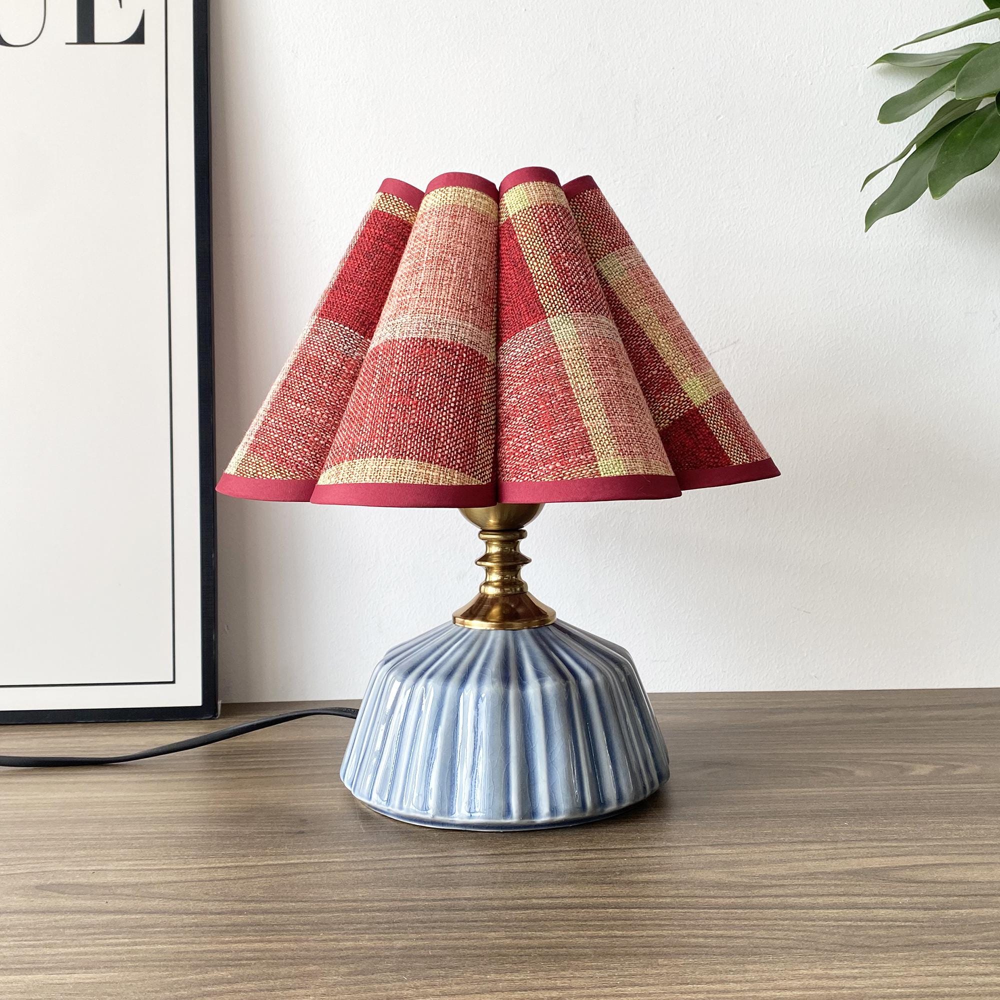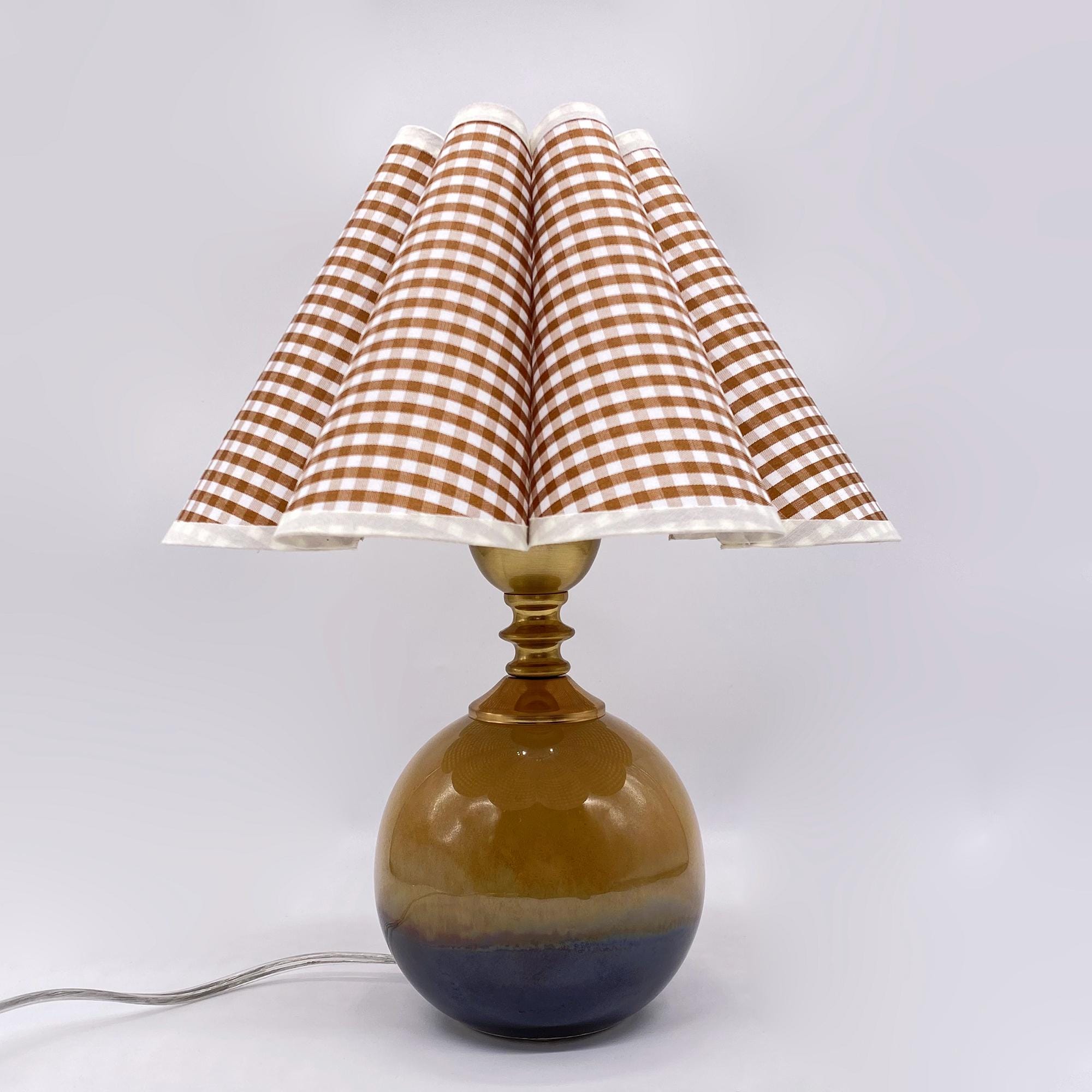 Handmade Ceramic Table Lamp with Gingham Fabric Petal Shade, 3 Colo...