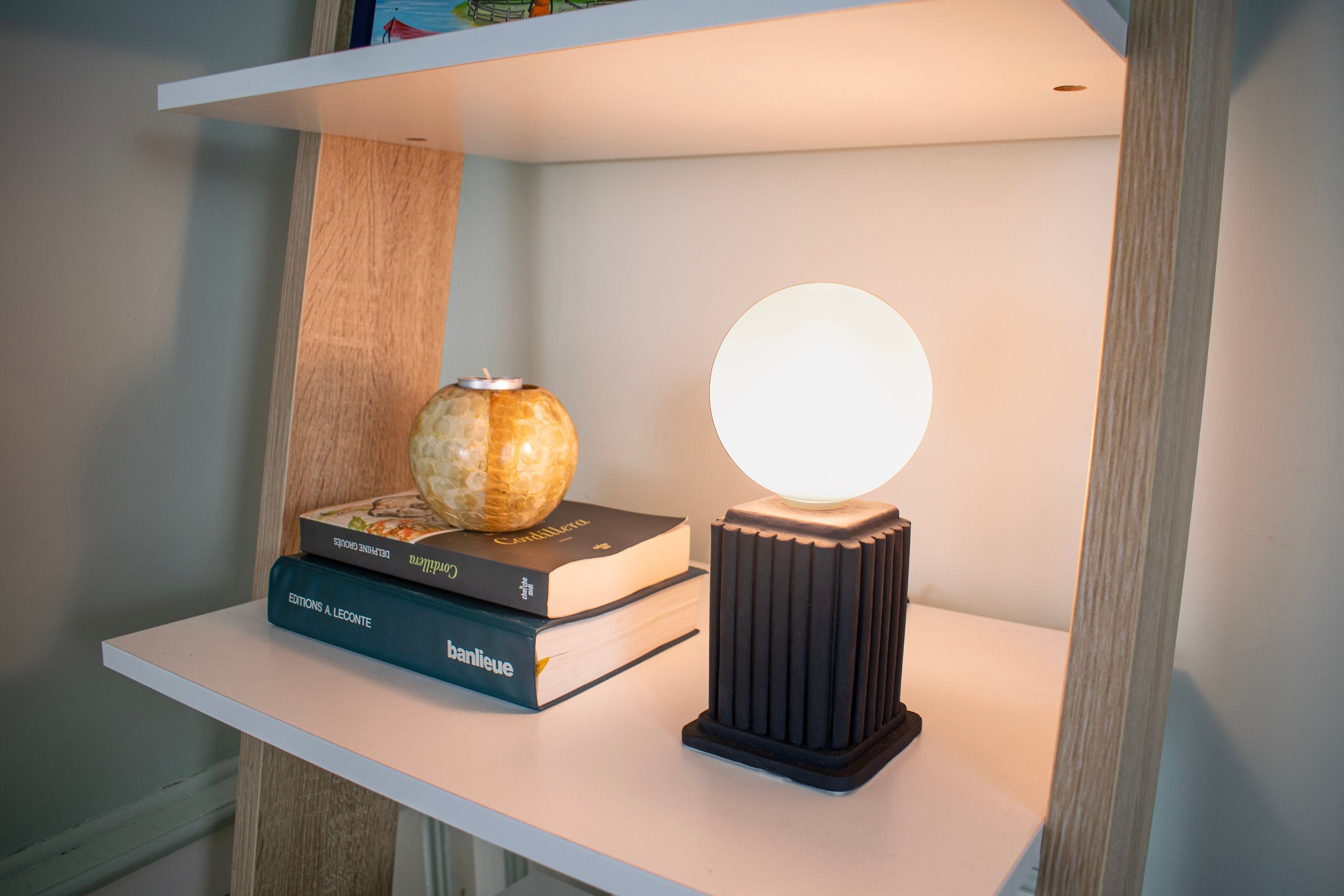 Hand Turned Ceramic Table Lamp: Dimmable Bedside Lighting with Line...