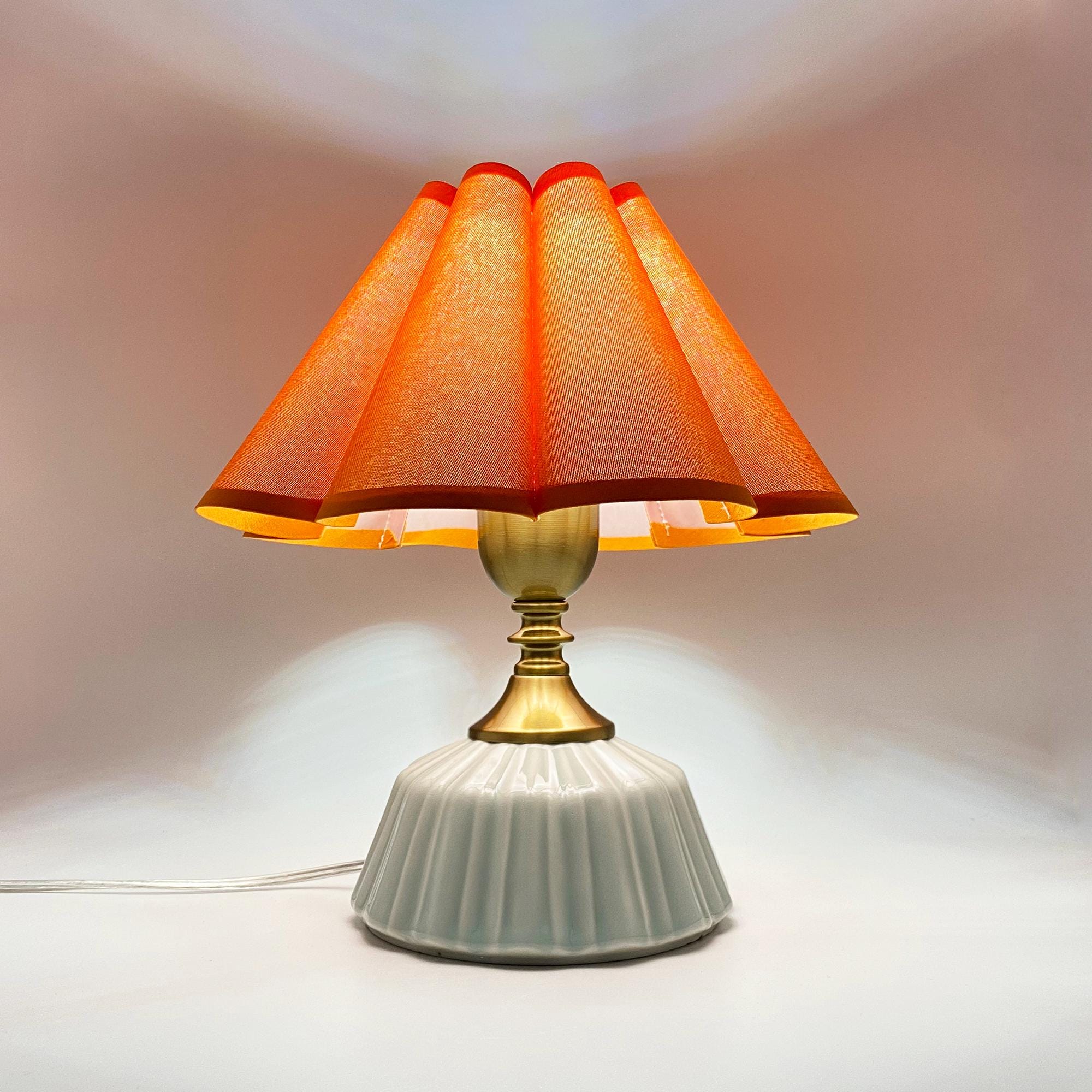 Handmade Ceramic Table Lamp with Orange Pleated Shade, Pumpkin Base...