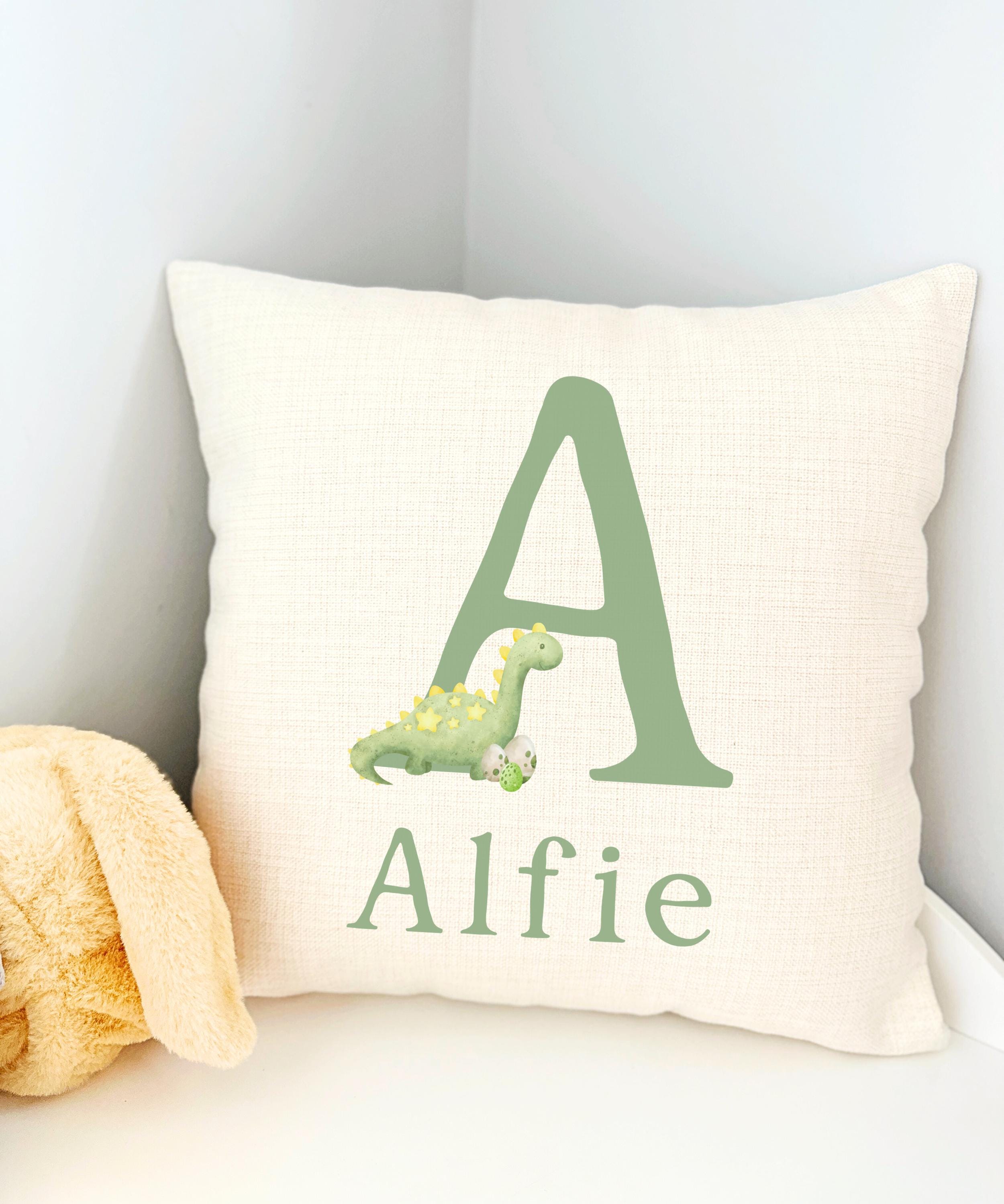 Personalised Green Dinosaur Cushion, Green Dino Bedroom Decor, Dino...