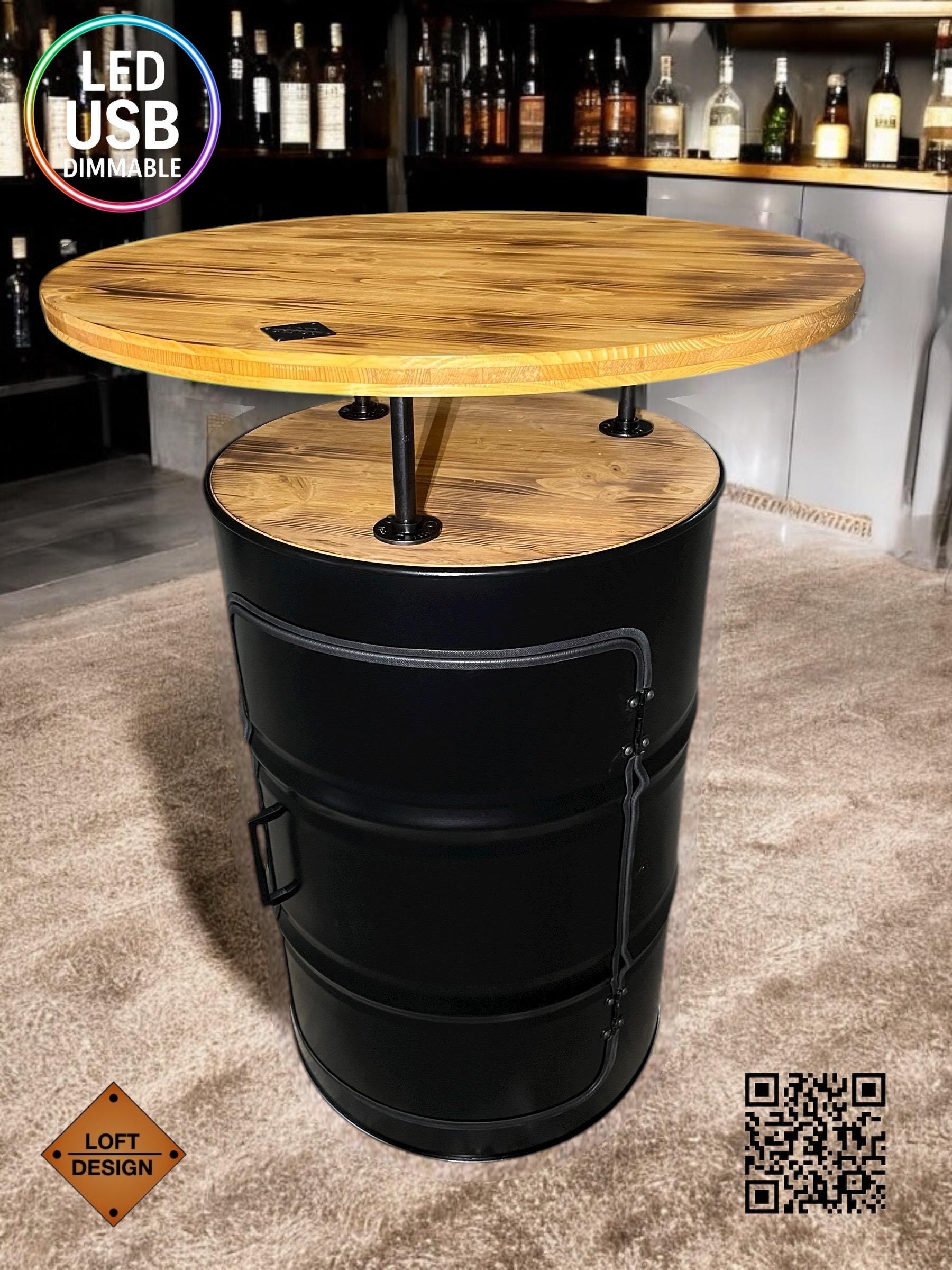 Oil drum bar table, garden table for the terrace, shelf made from a...