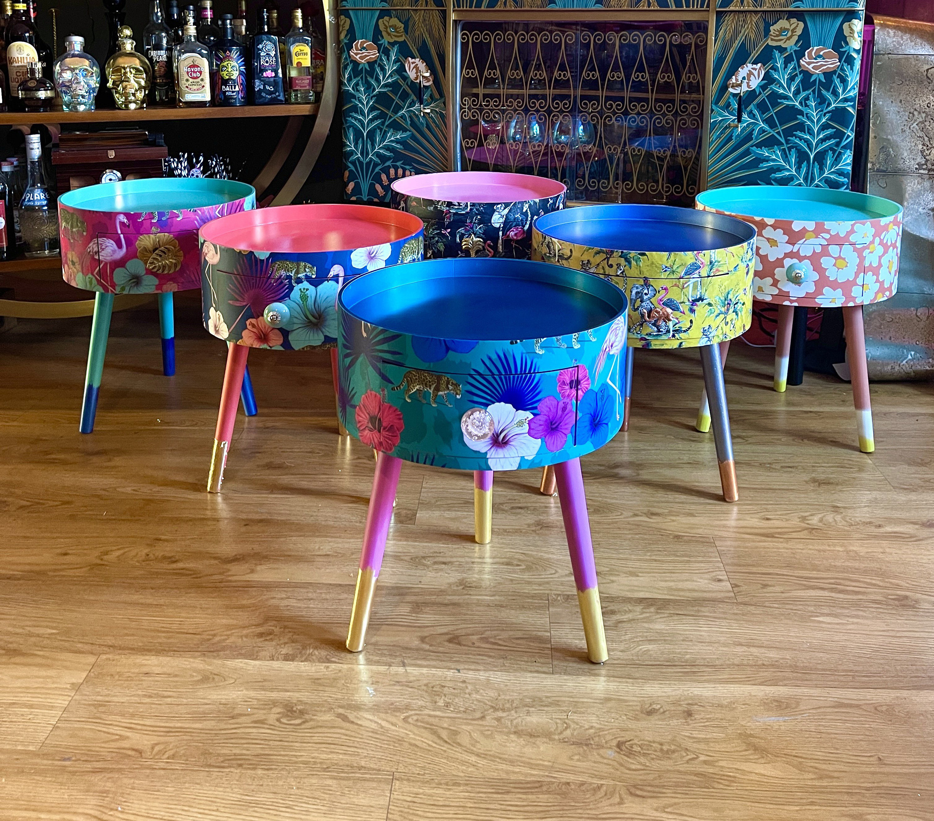 Beautiful tropical side table for sale Flamingo Pink top and matching legs with a stunning tropical ...