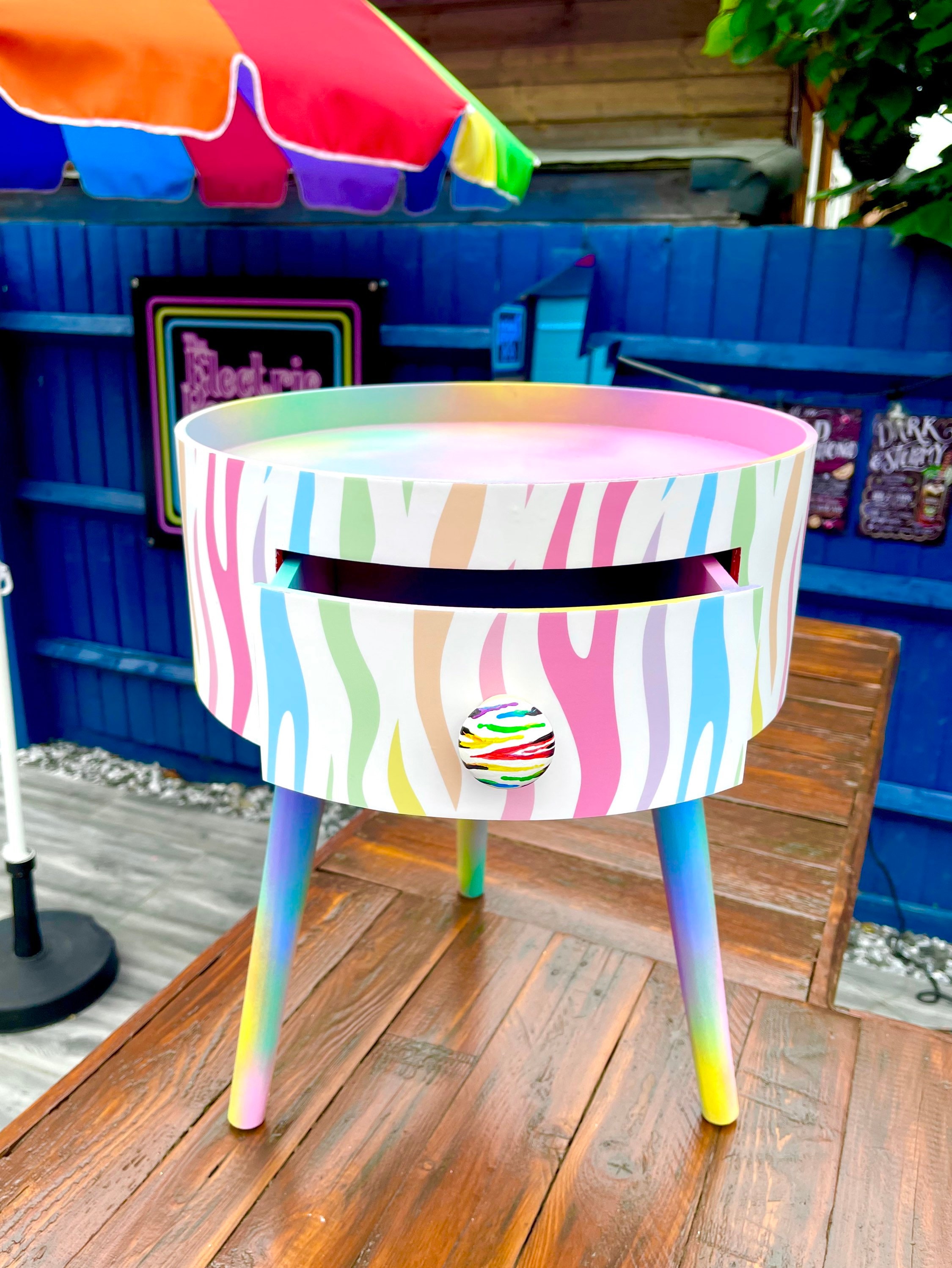 Pastel Zebra bed side table cabinet in white bedside table upcycled...
