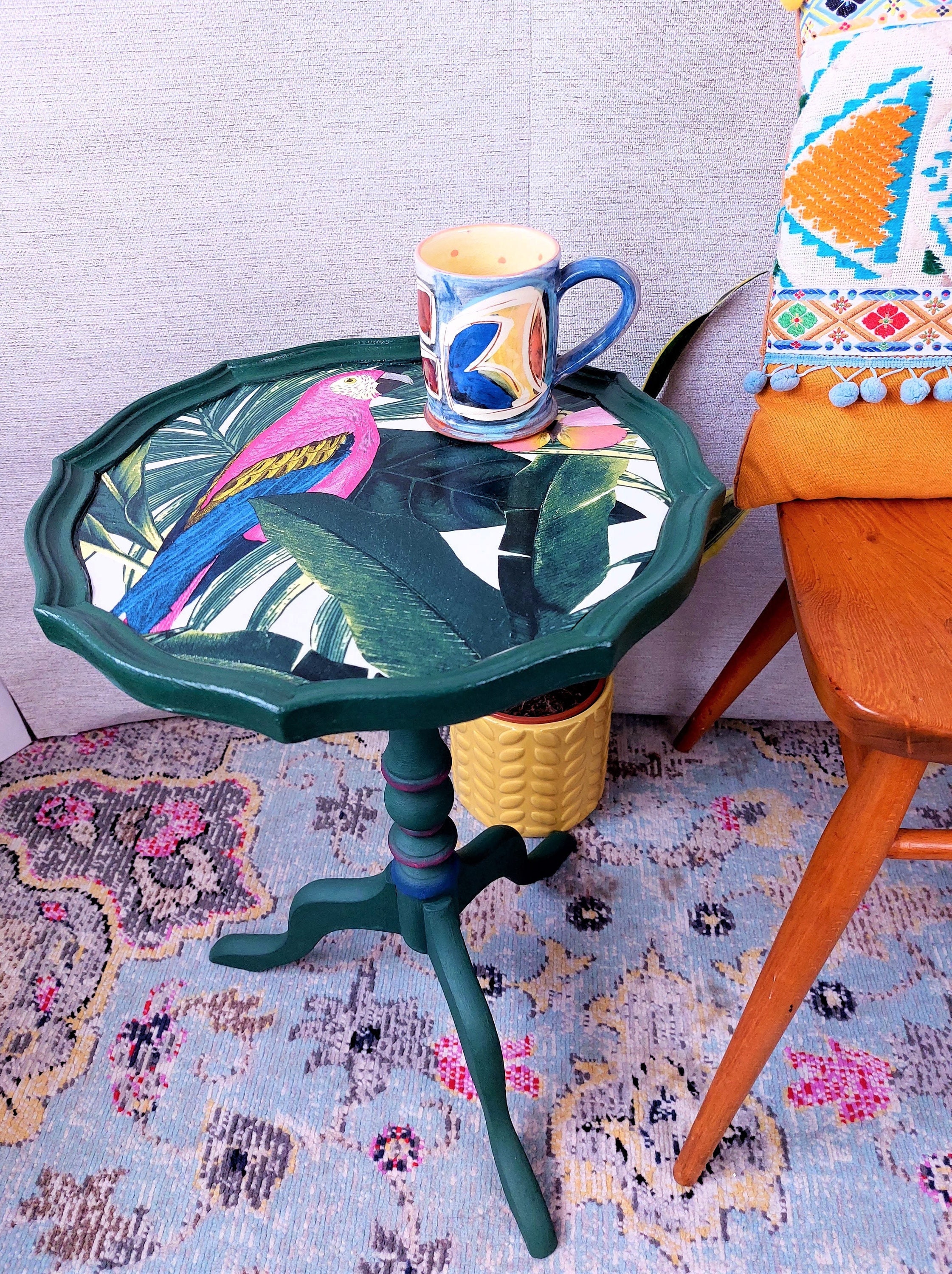 COMMISSIONS TAKEN - Upcycled quirky hand painted tall side table, w...