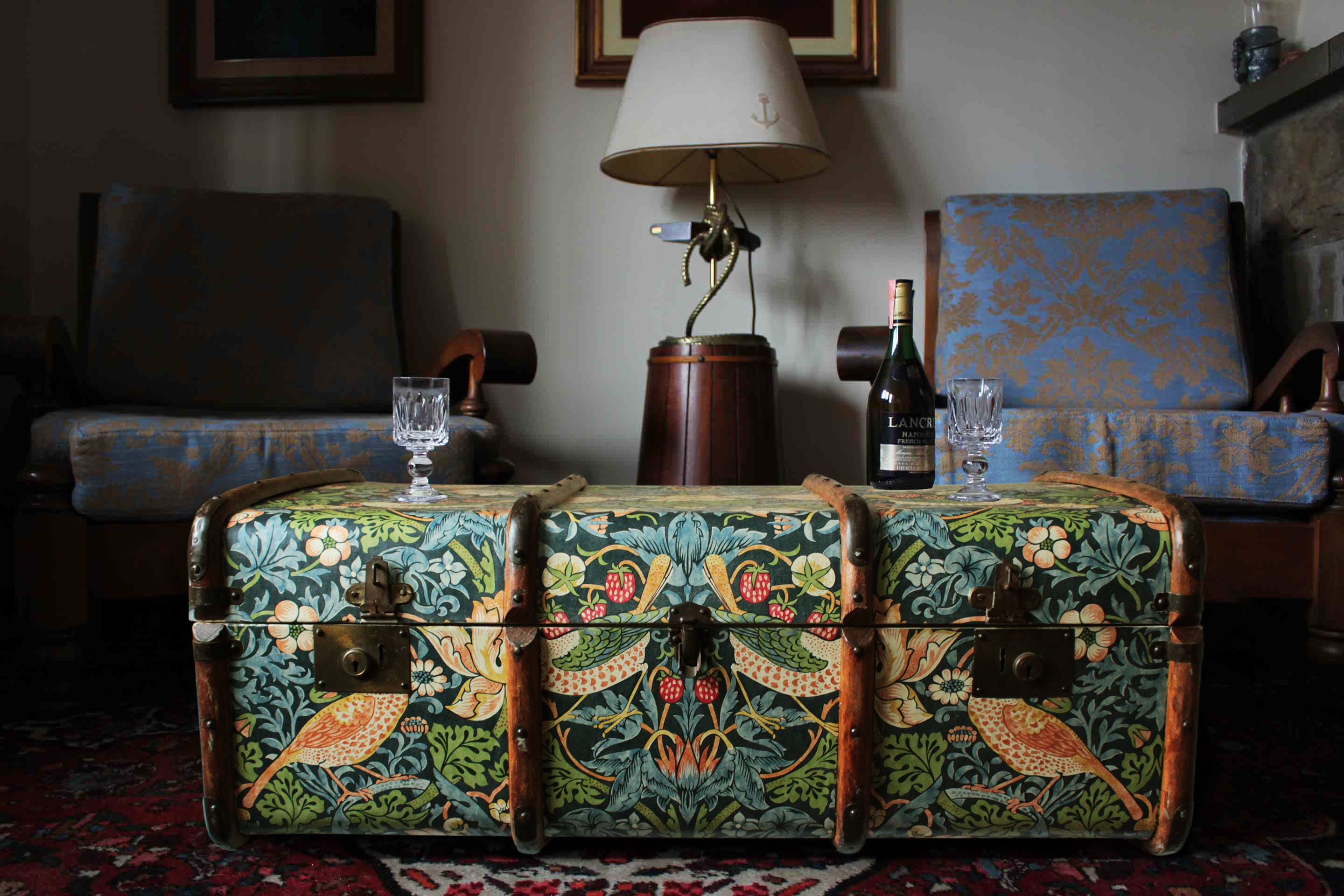 William Morris Steamer Trunk, Strawberry Thief Wallpaper, Upcycled ...