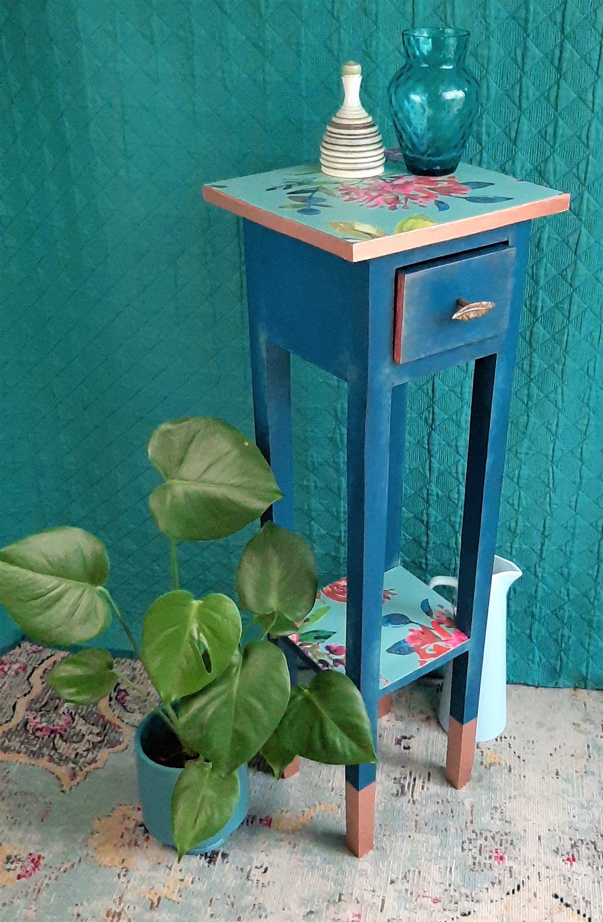 Thanks for looking at my listing for this vintage side table, hand painted in recycled chalk paints....