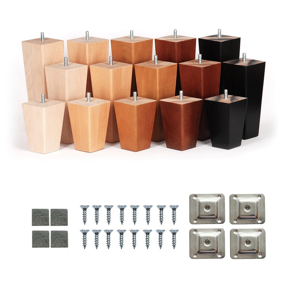 4x Wooden Furniture Tapered Square Legs Feet Beech For Stools Sofa ...
