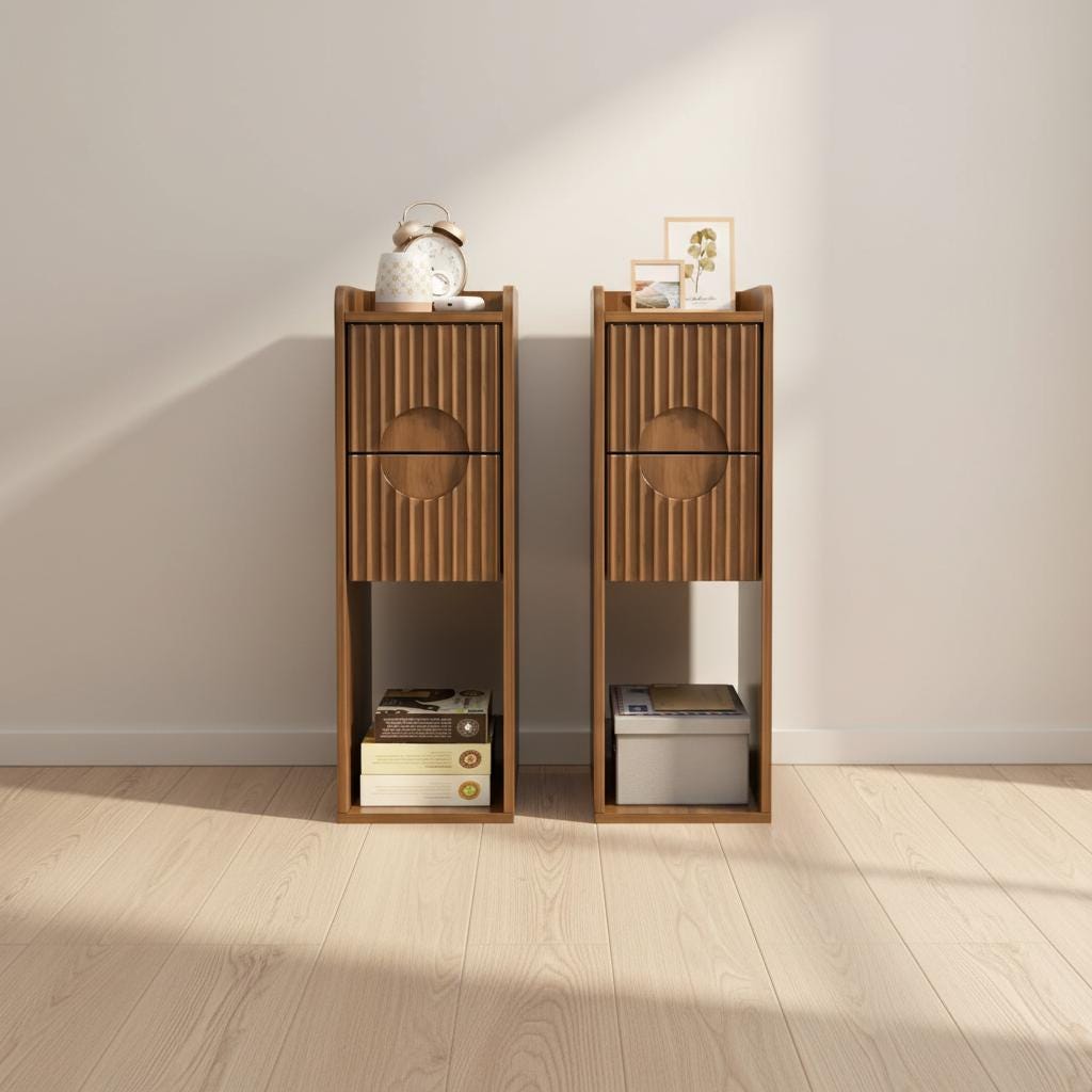 This narrow wall-mounted nightstand with two drawers combines modern design and practicality in one ...