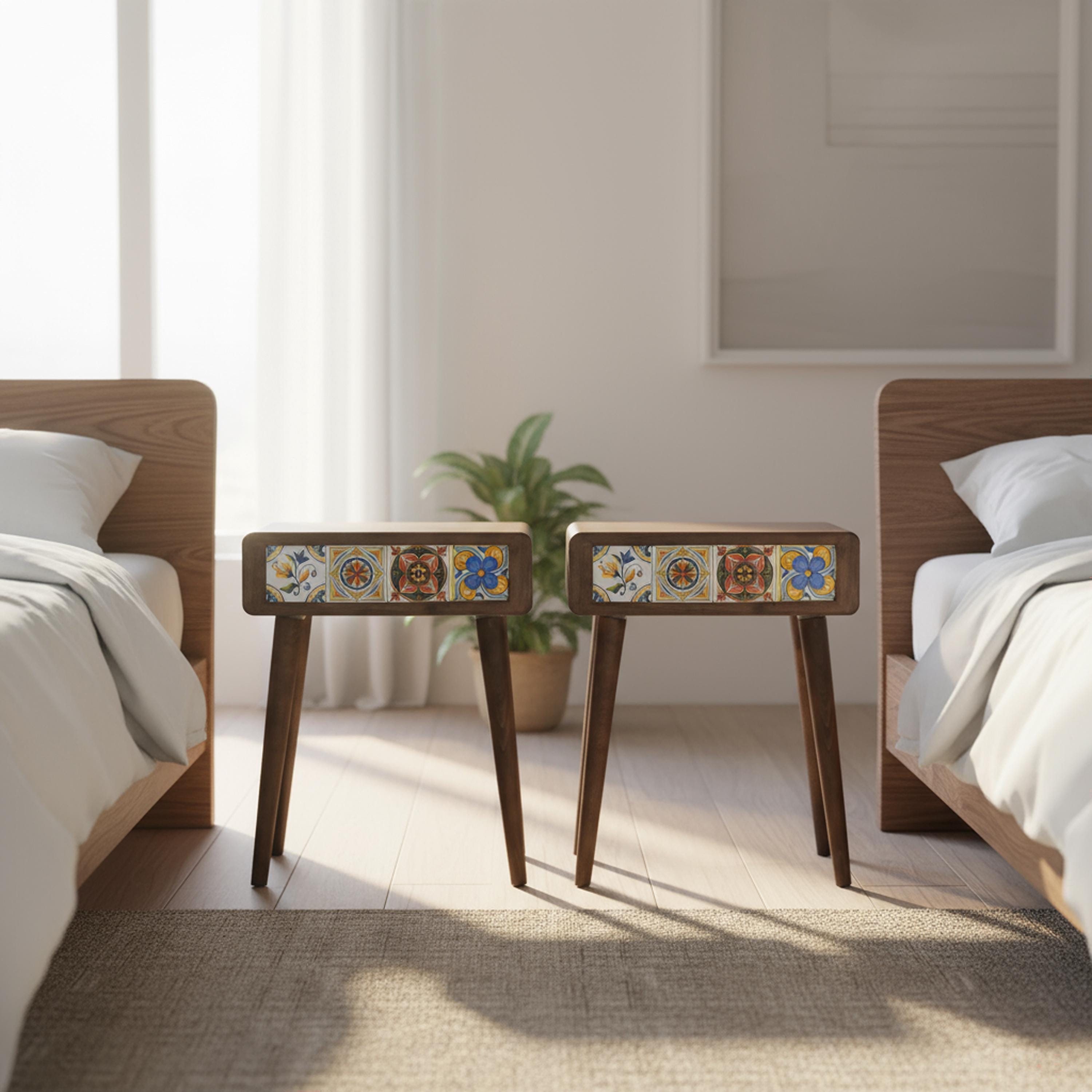 Bring vibrant character and timeless function to your bedroom with this handcrafted beech wood night...