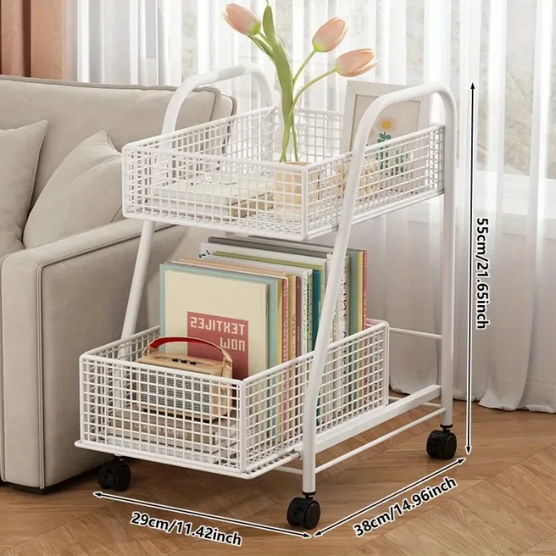 2tiers Movable Shelves Sofa Side Table Storage Shelves Living Room Snack Trolleys Household Multi-fu...
