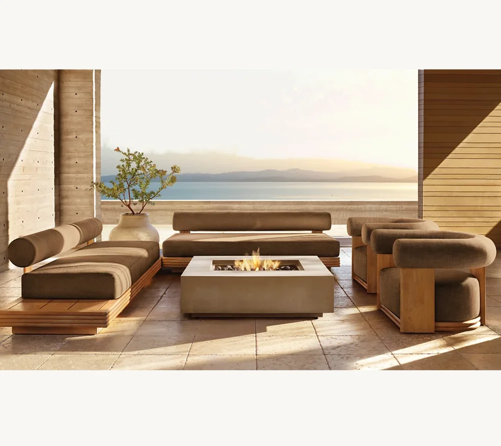 High-End Terrace Hotel Teak Sofa Set Outdoor Furniture with Manufac...