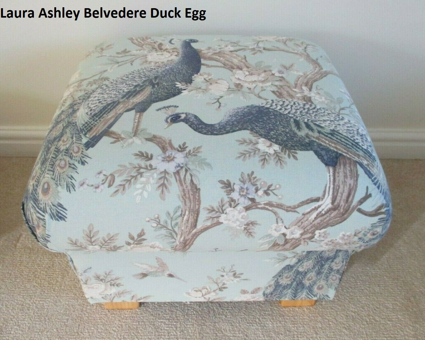 Laura Ashley Fabric Storage Footstool: Belvedere Duck Egg Blue Peac...
