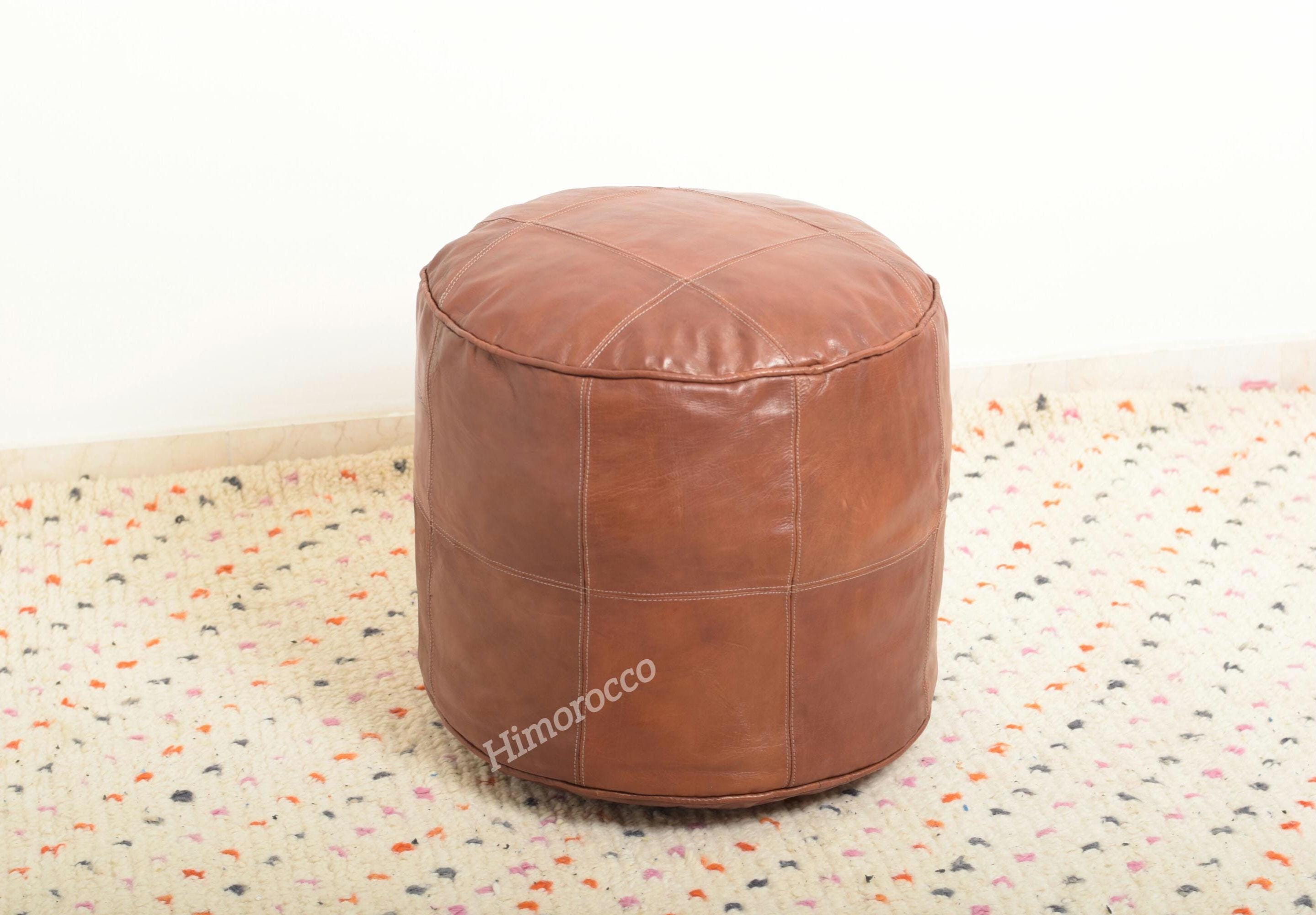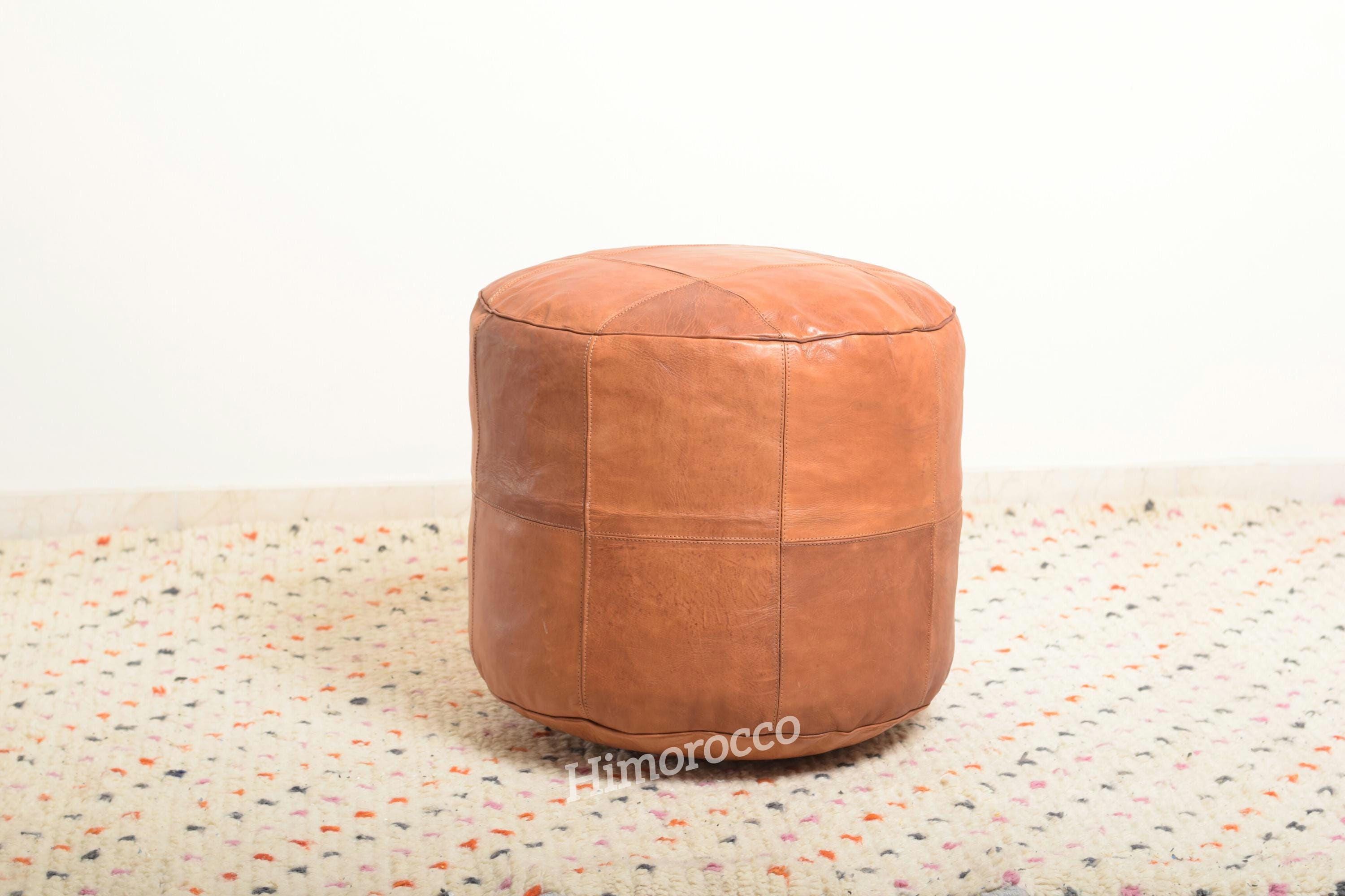 Moroccan Round Leather Pouf Cover Handmade , Round Leather Pouf Tan...