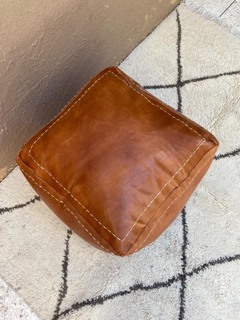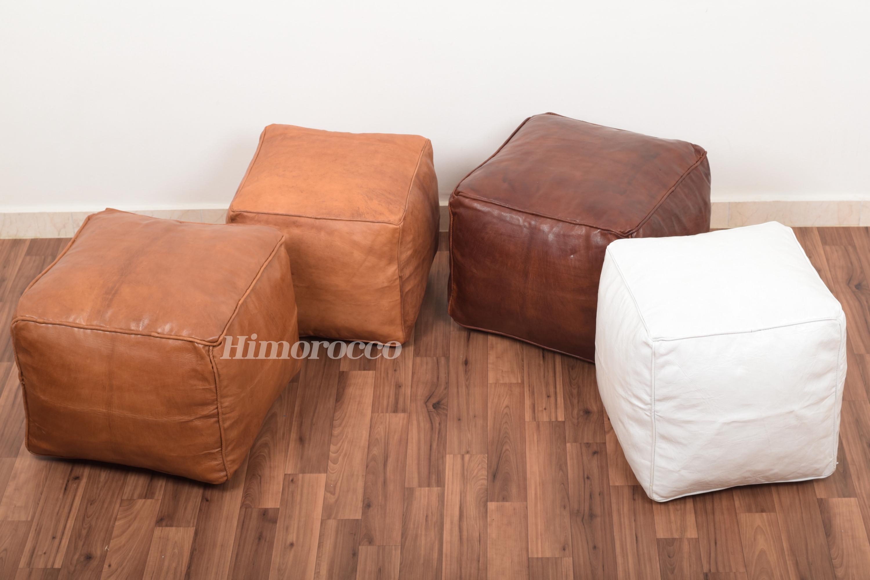 Moroccan Square Leather Pouf Handmade , stuffed Pouf , luxury ottom...