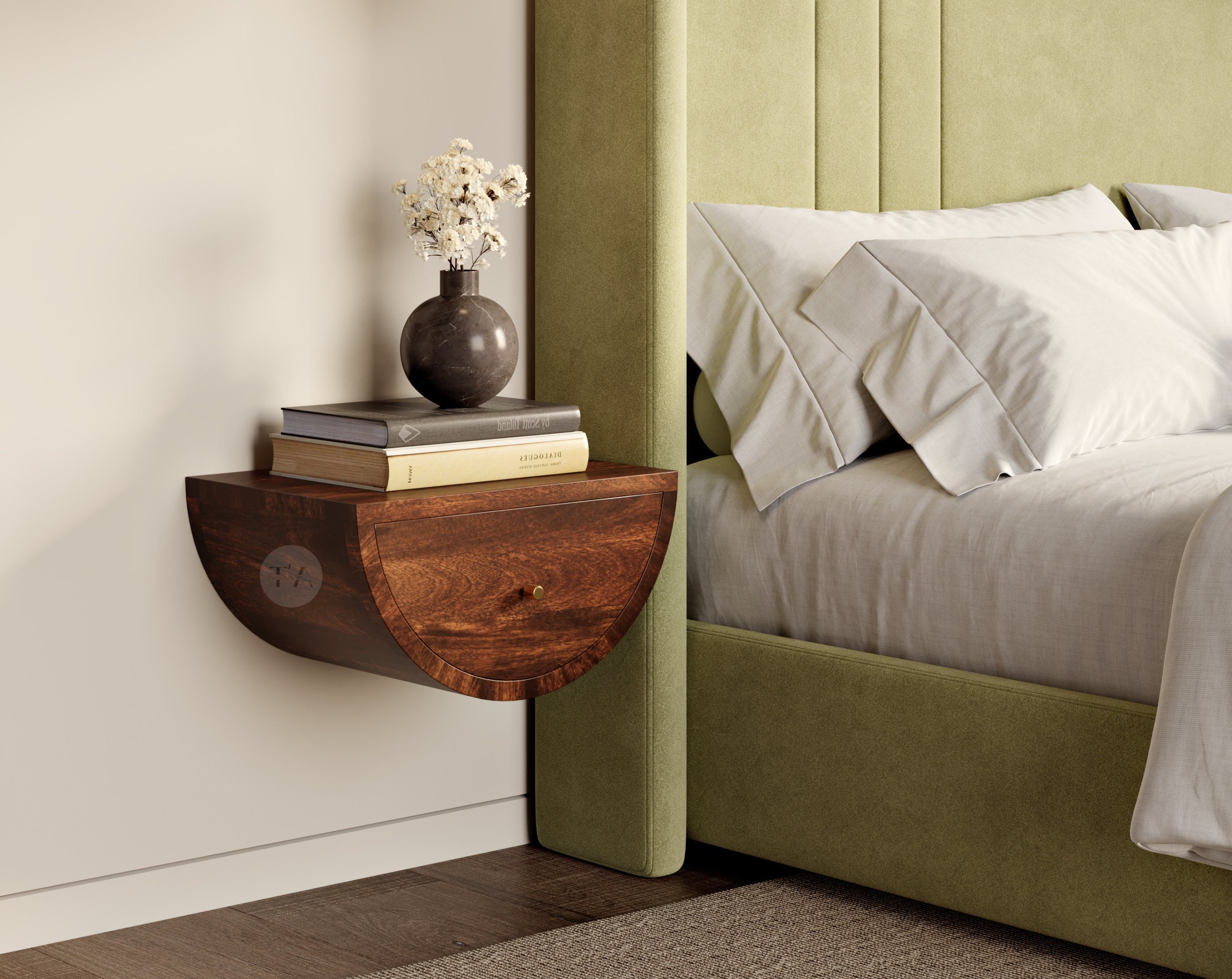 Enhance your space with our circular curved floating bedside table. Handmade from solid mango wood i...
