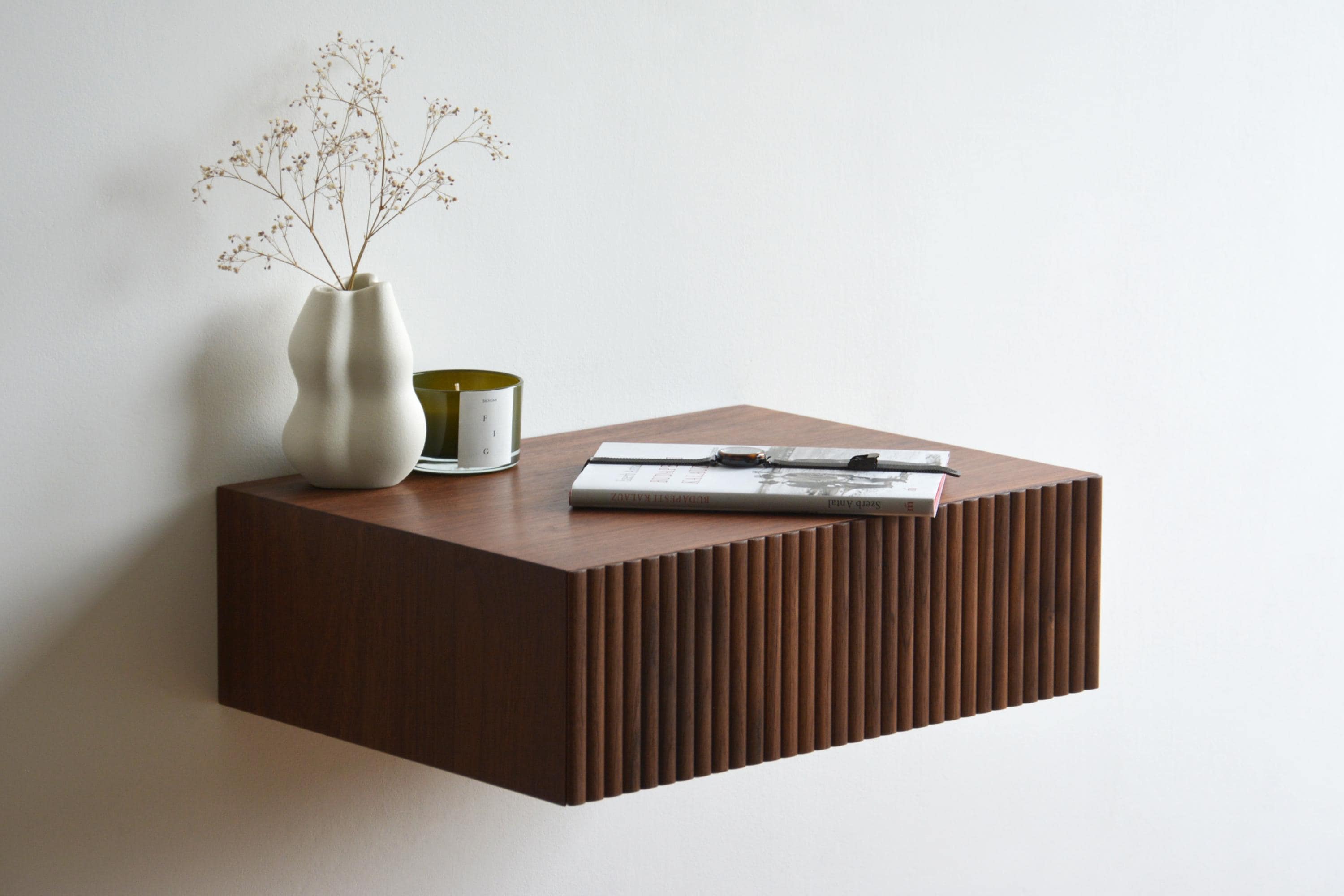 "Walnut floating nightstand with fluted drawer Our fluted walnut nightstands are a result of hi...