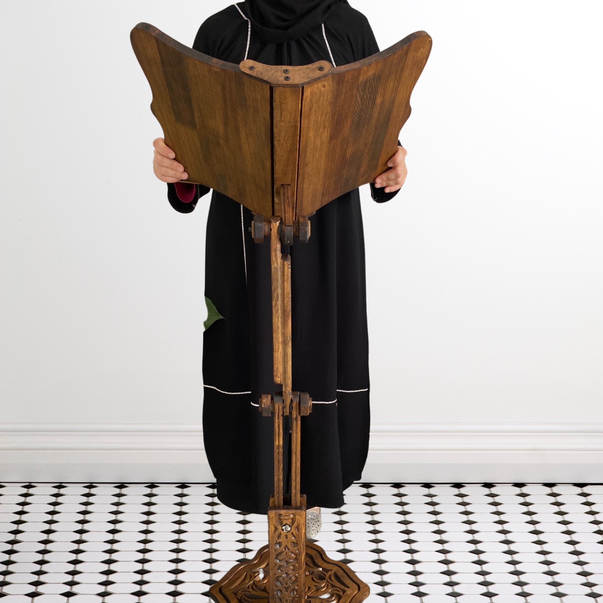 Adjustable Quran Stand Floor Model, Height & Angle Wooden Readi...