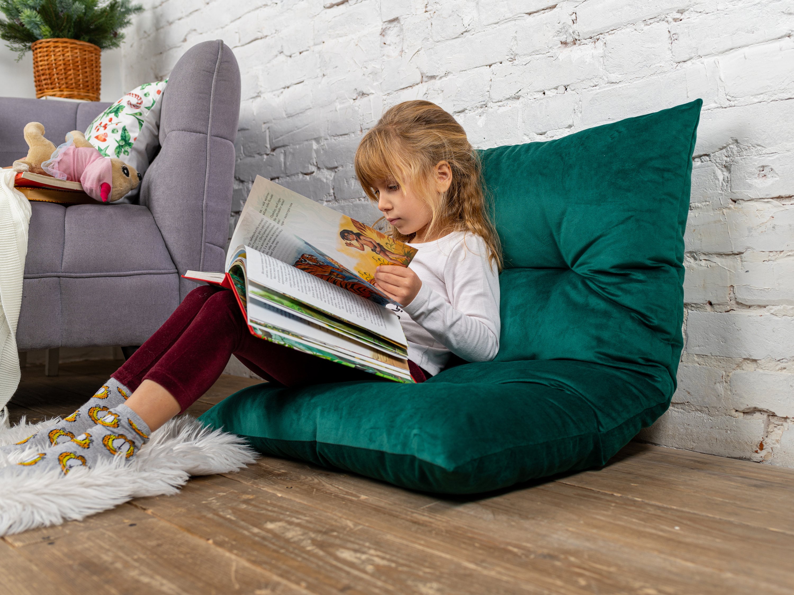 Reading nook floor cushion for kids, Washable velvet floor pillow f...