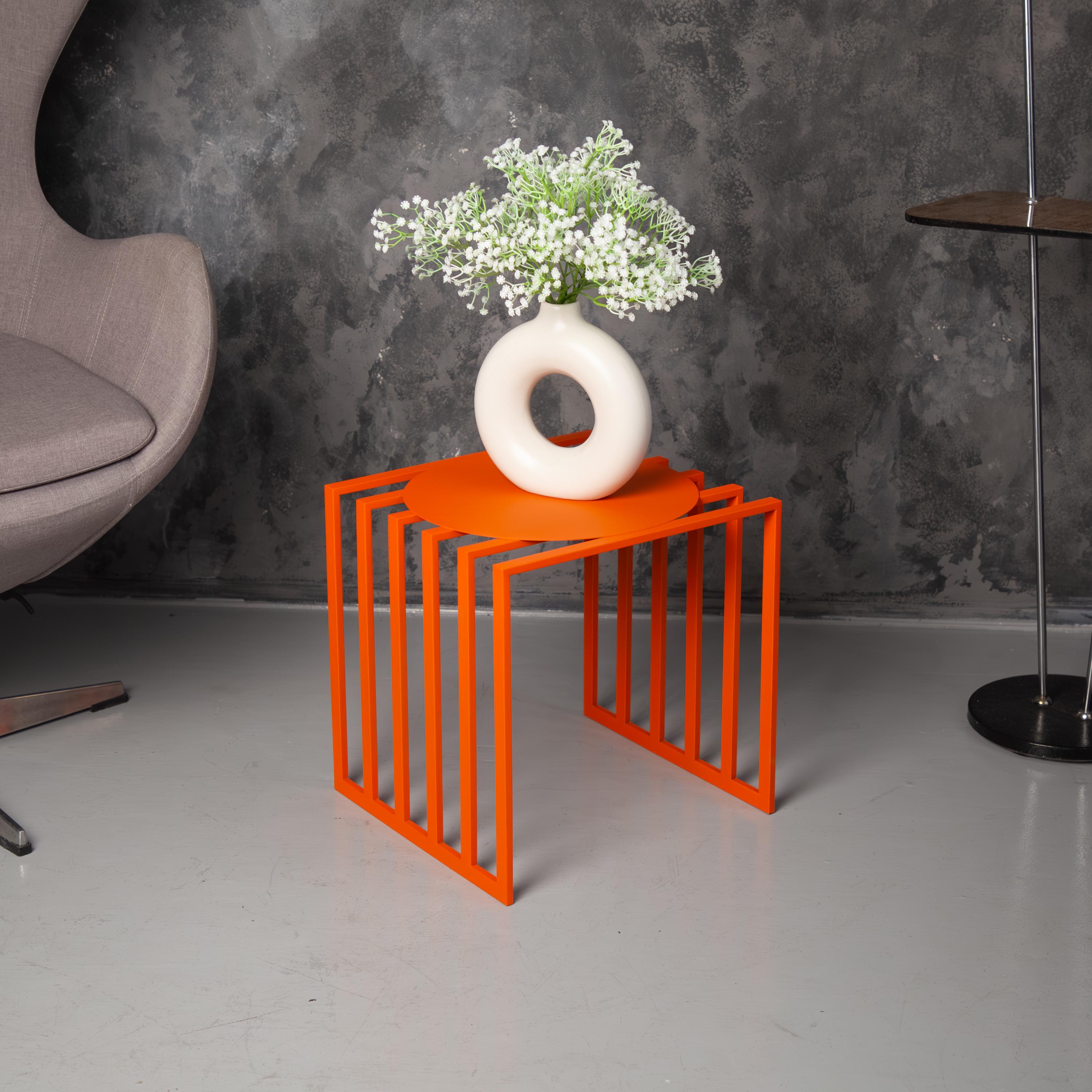 Handmade modern metal side table, minimalist accent table for living room or bedroom. Small coffee t...