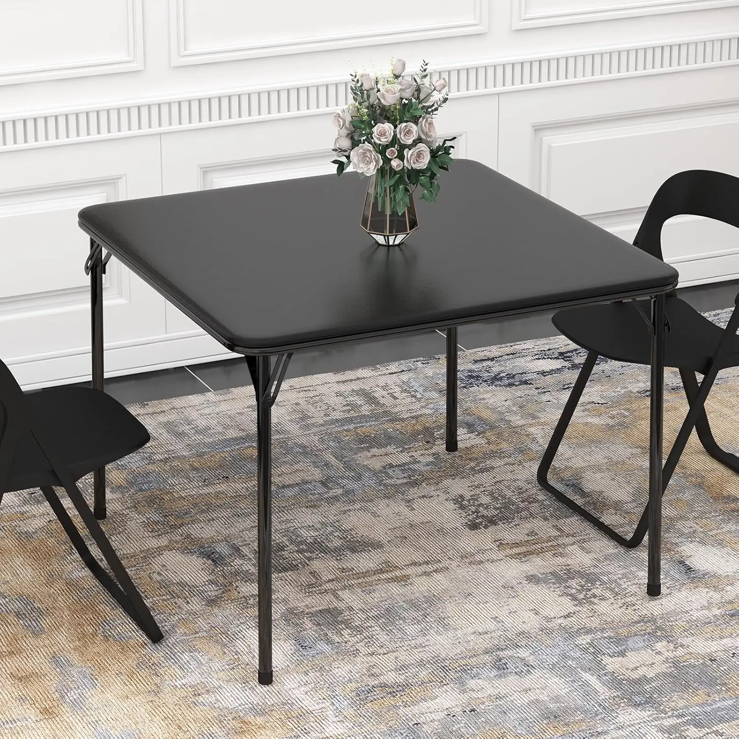 Folding Table, 33.6 in Folding Card Table, Portable Square Folding Table with PU Soft Cushion, Black...