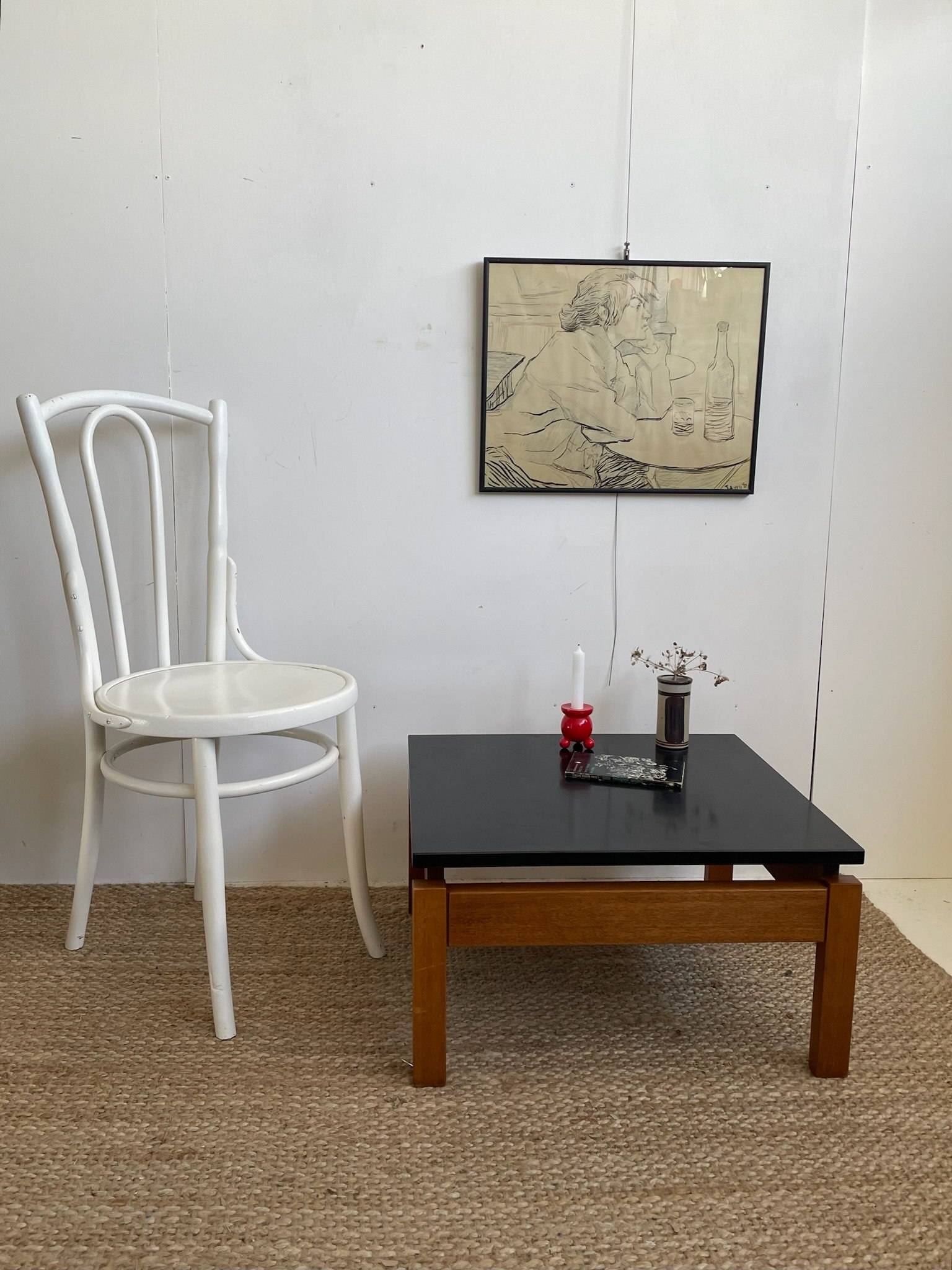 A typical mid century footstool. You can perfectly use it as a little side table or as a plant bench...