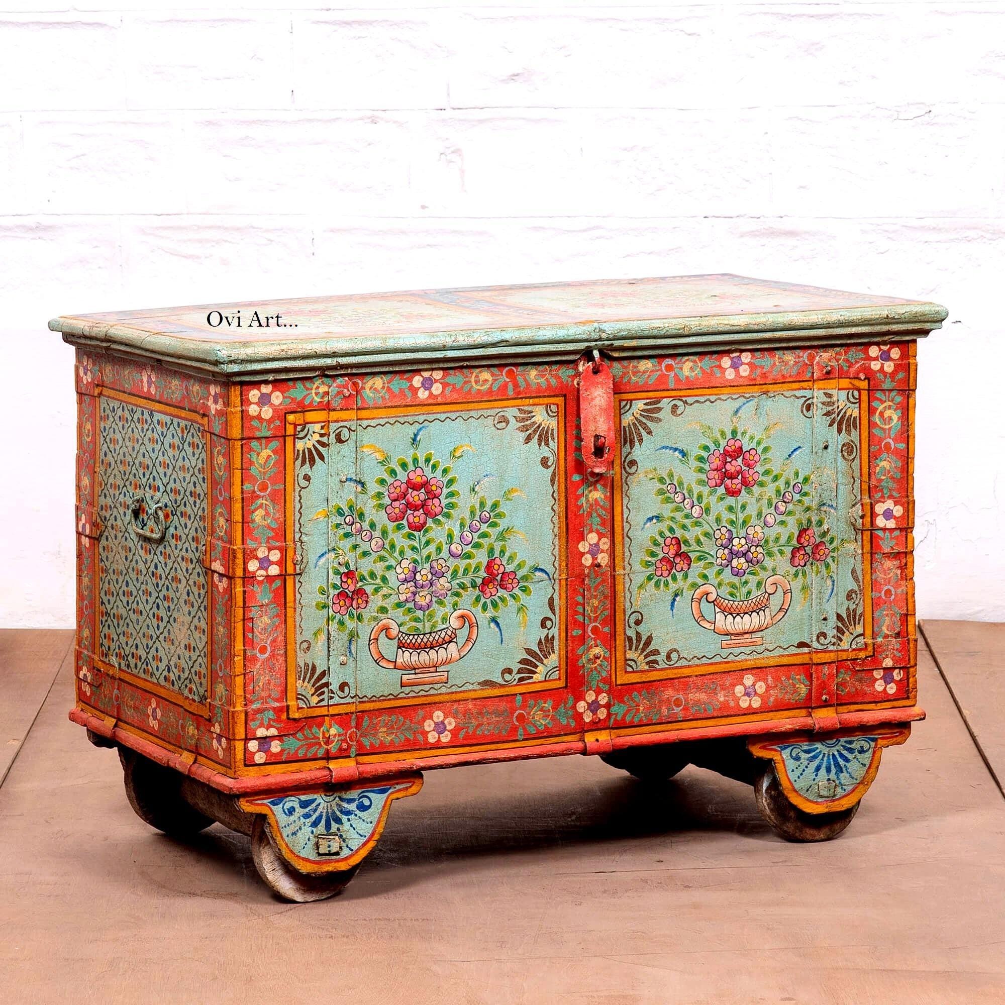 Wooden Storage Trunk Chest | Hand-Painted Elegant Wooden Chess Storage Trunk | Wooden Coffee Table |...