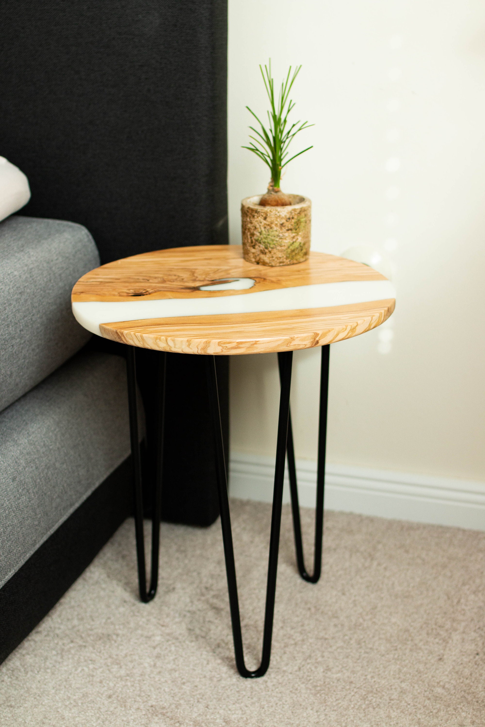 Standing table, olive wood and epoxy resin, modern design, coffee t...