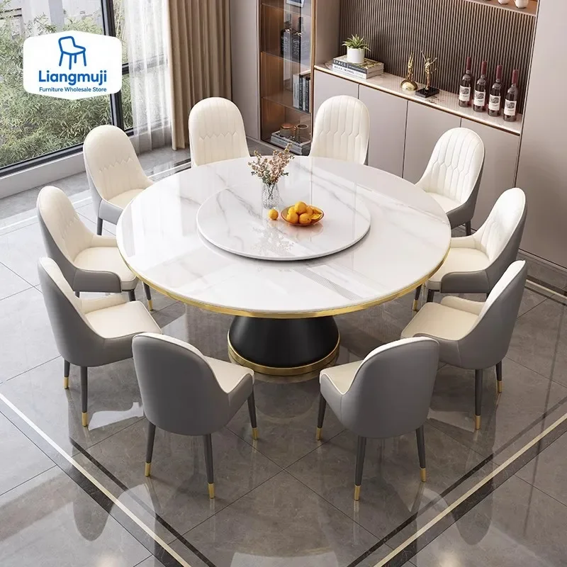 Round Sliding Table Luxury Table Stainless Steel Kitchen Islands Transparent Mesa Comedor Garden Fur...