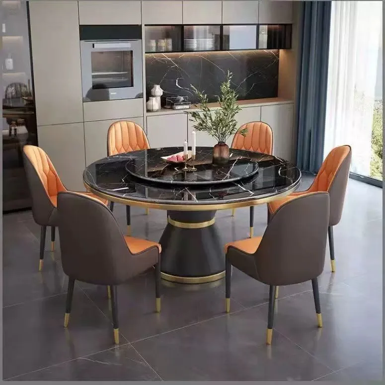 Round Sliding Table Luxury Table Stainless Steel Kitchen Islands Transparent Mesa Comedor Garden Fur...