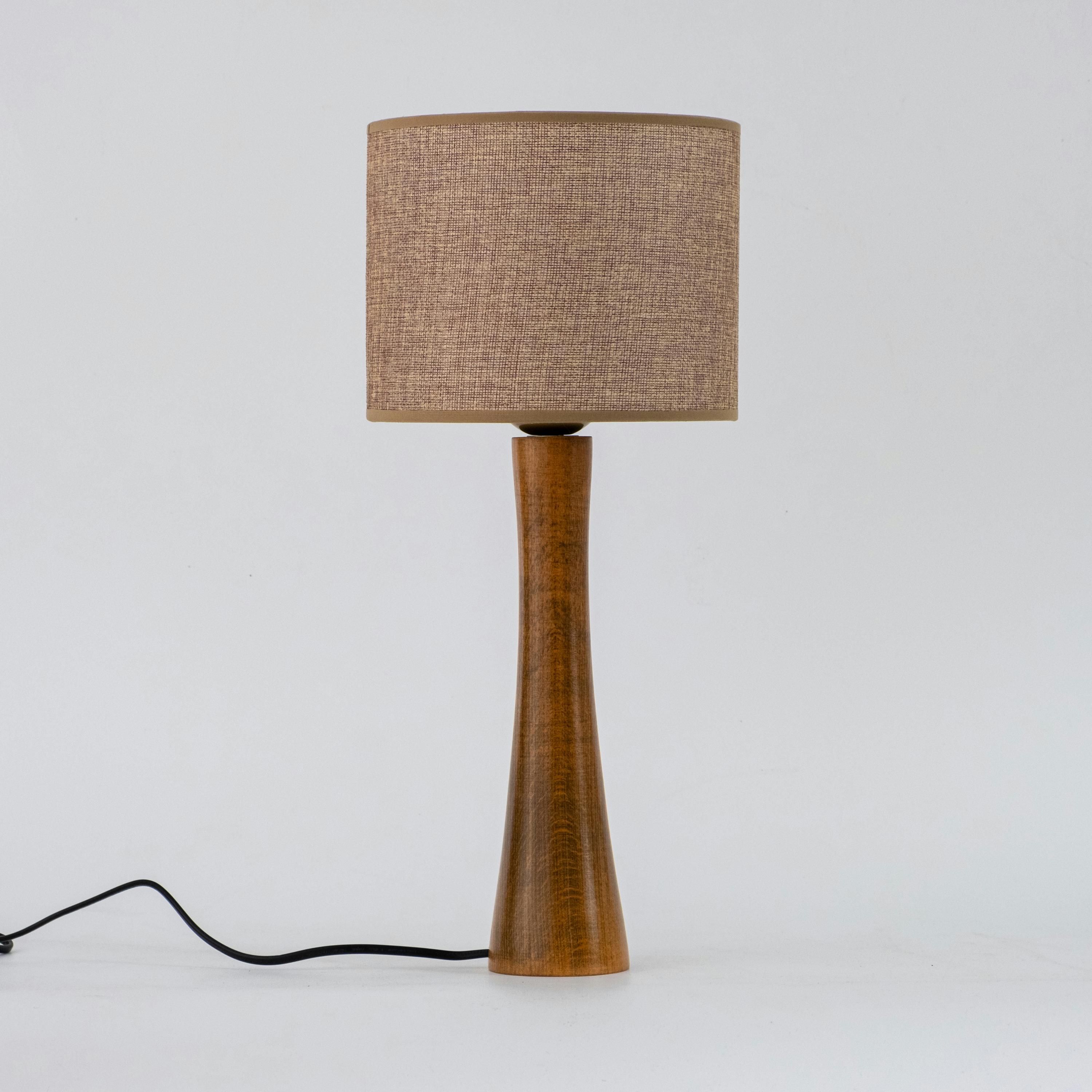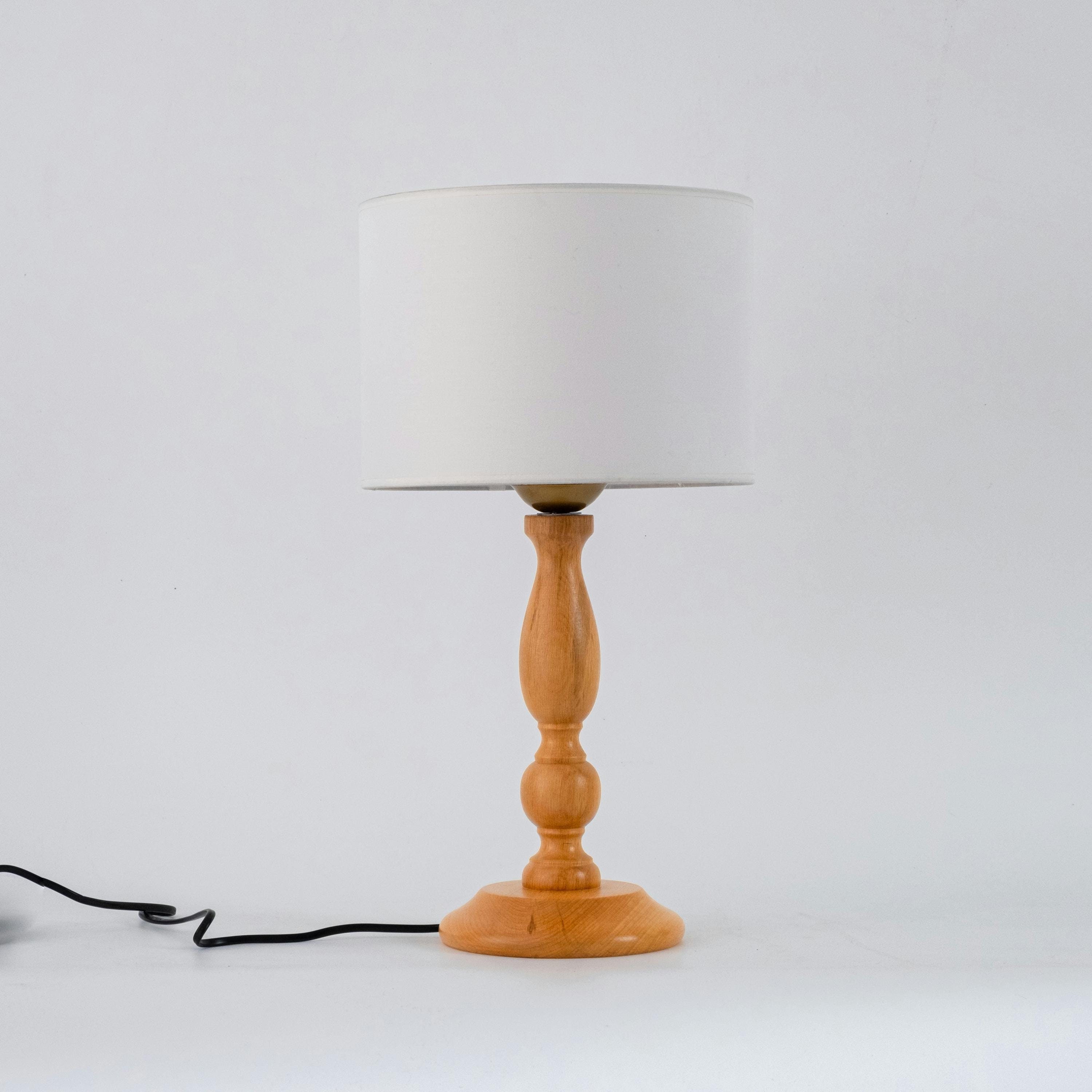 Classic Wooden Table Lamp, Beech Bedside Table Lamp, Linen Lampshad...