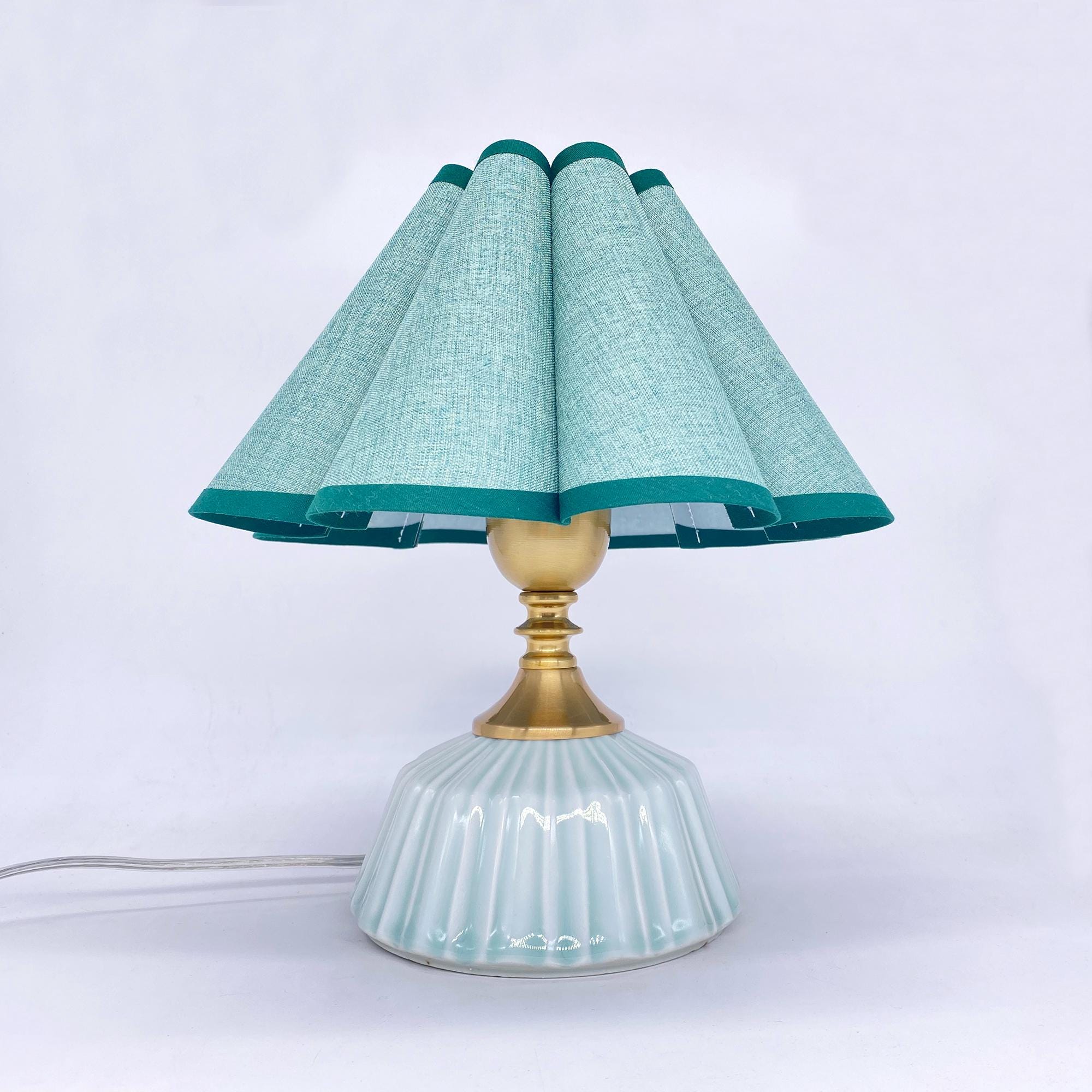 Handmade Ceramic Table Lamp with Green Petal Lampshade This handcrafted table lamp features a smooth...
