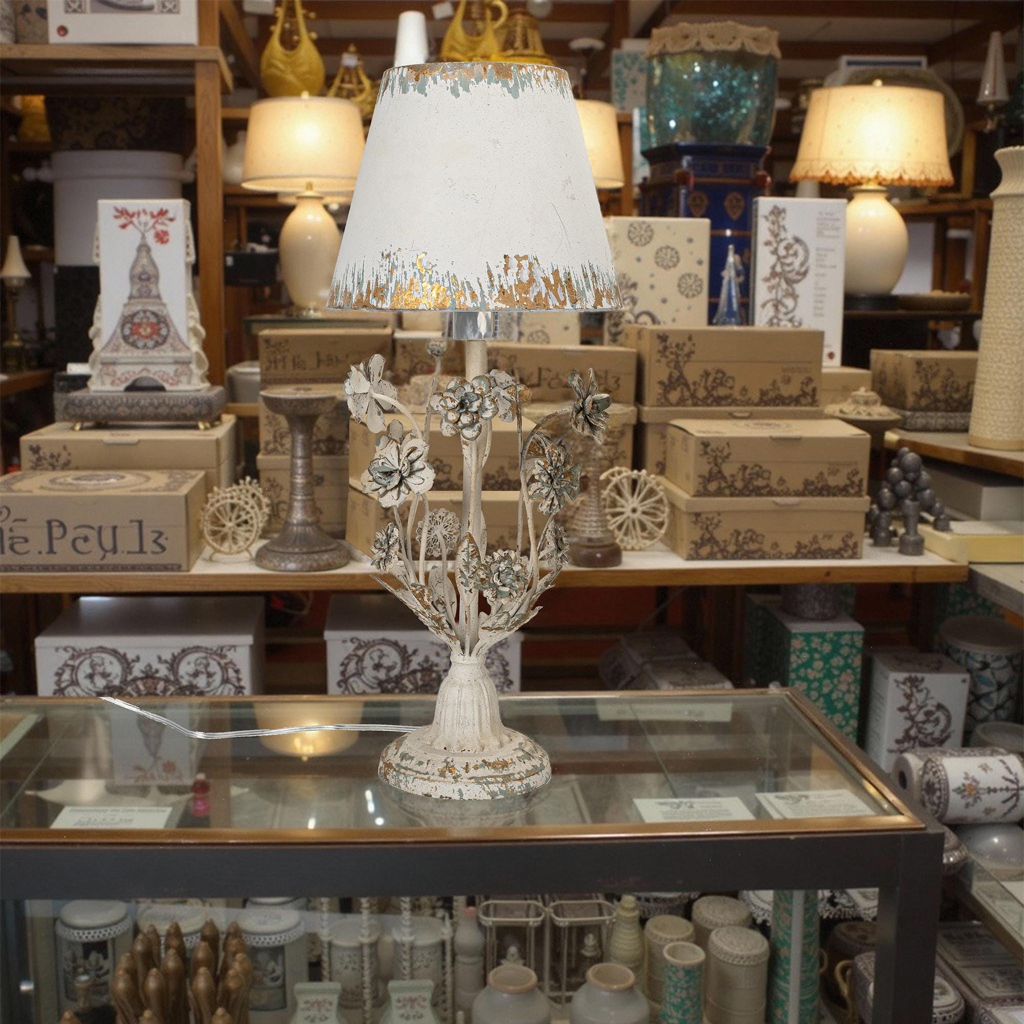 This table lamp adds a touch of natural beauty to any interior space with its unique floral design a...