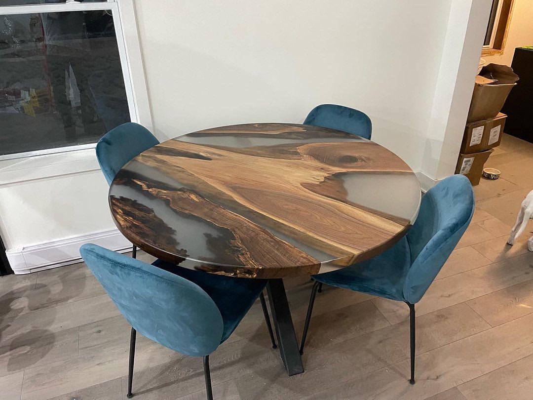 Round Epoxy Resin Table, River Coffee Table, Handcrafted Wooden Tab...