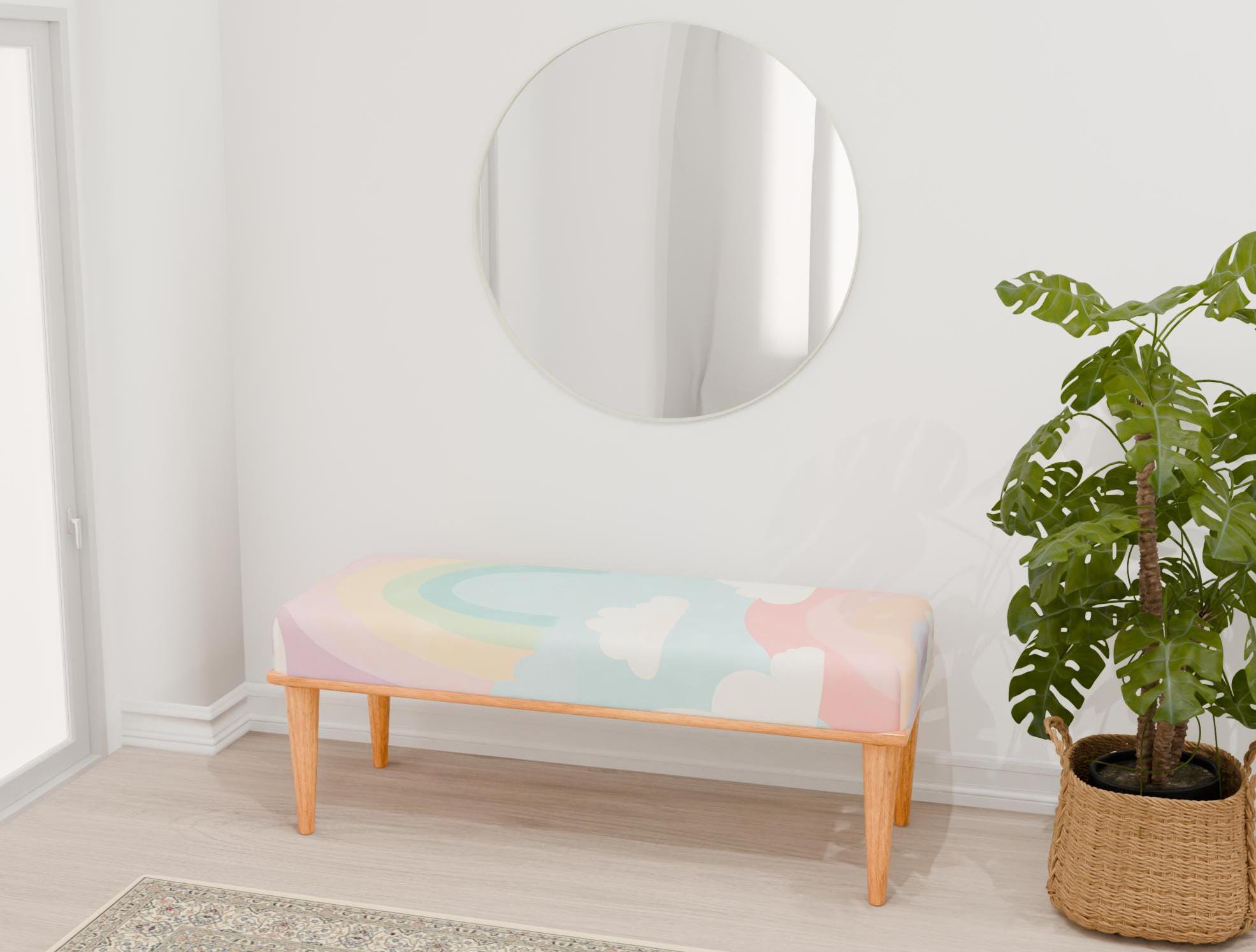 "Pastel colors bench, Rainbow bench, Wooden bench, Hallway bench, Livingroom bench, Upholstered...