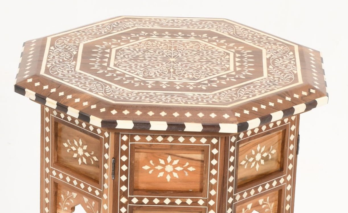 Handmade Inlay Hexagon Side Table Wood Accent Table