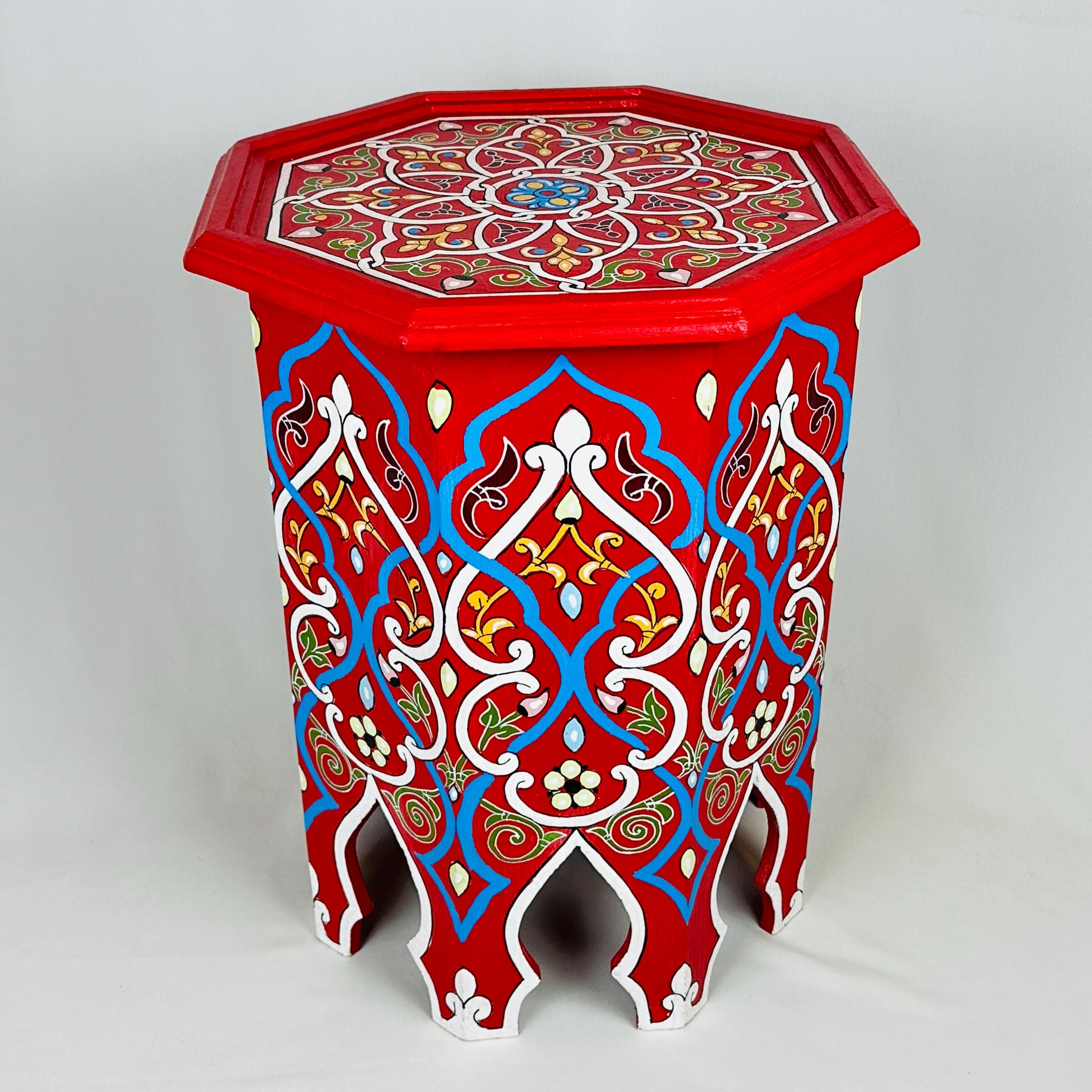 Moroccan side table, Moroccan Hexagonal Hand Painted Wooden Side Ta...