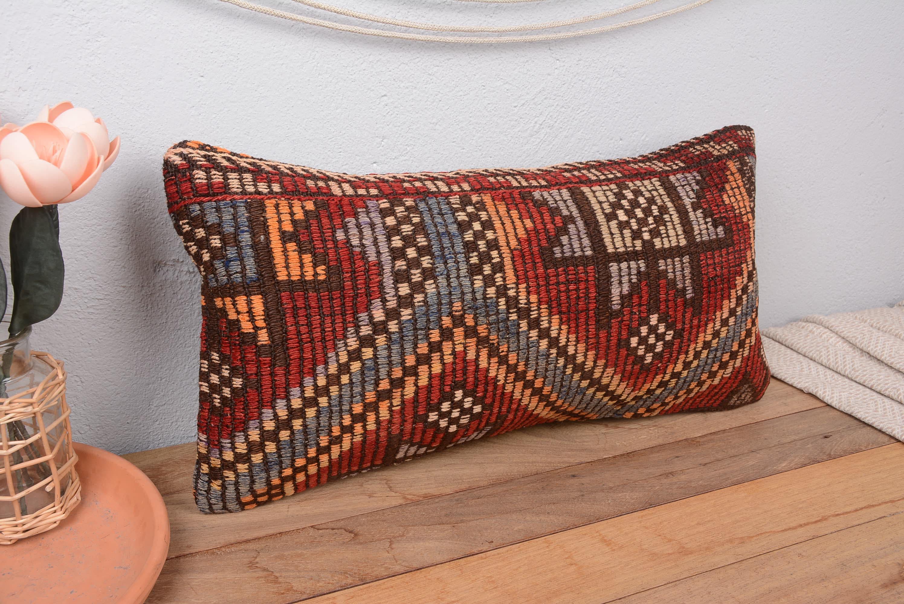 Turkish Kilim Pillow, Vintage Kilim Throw Pillow, 12x24 Kilim Pillo...