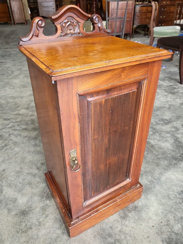 Antique Edwardian 1x door pot cupboard side end table shelf Size (cm) 85 h x 32 d x 39.5 w All of ou...
