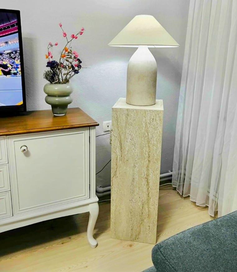 Travertine Look Side Table, Minimalist Pedestal Stand, Modern Displ...