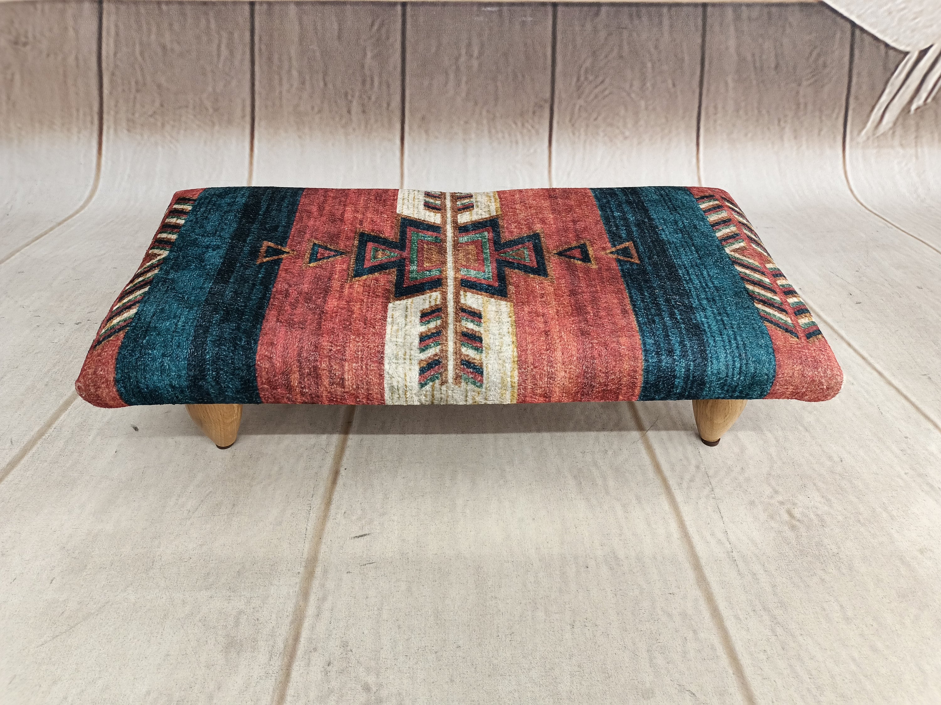 Neutral kilim step stool, Handmade wooden step stool, Minimalist st...