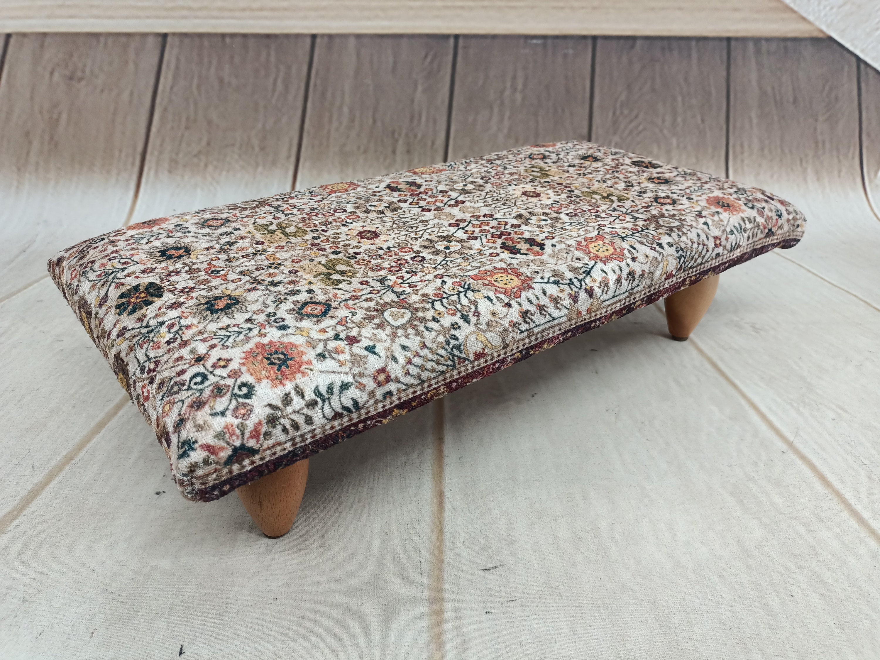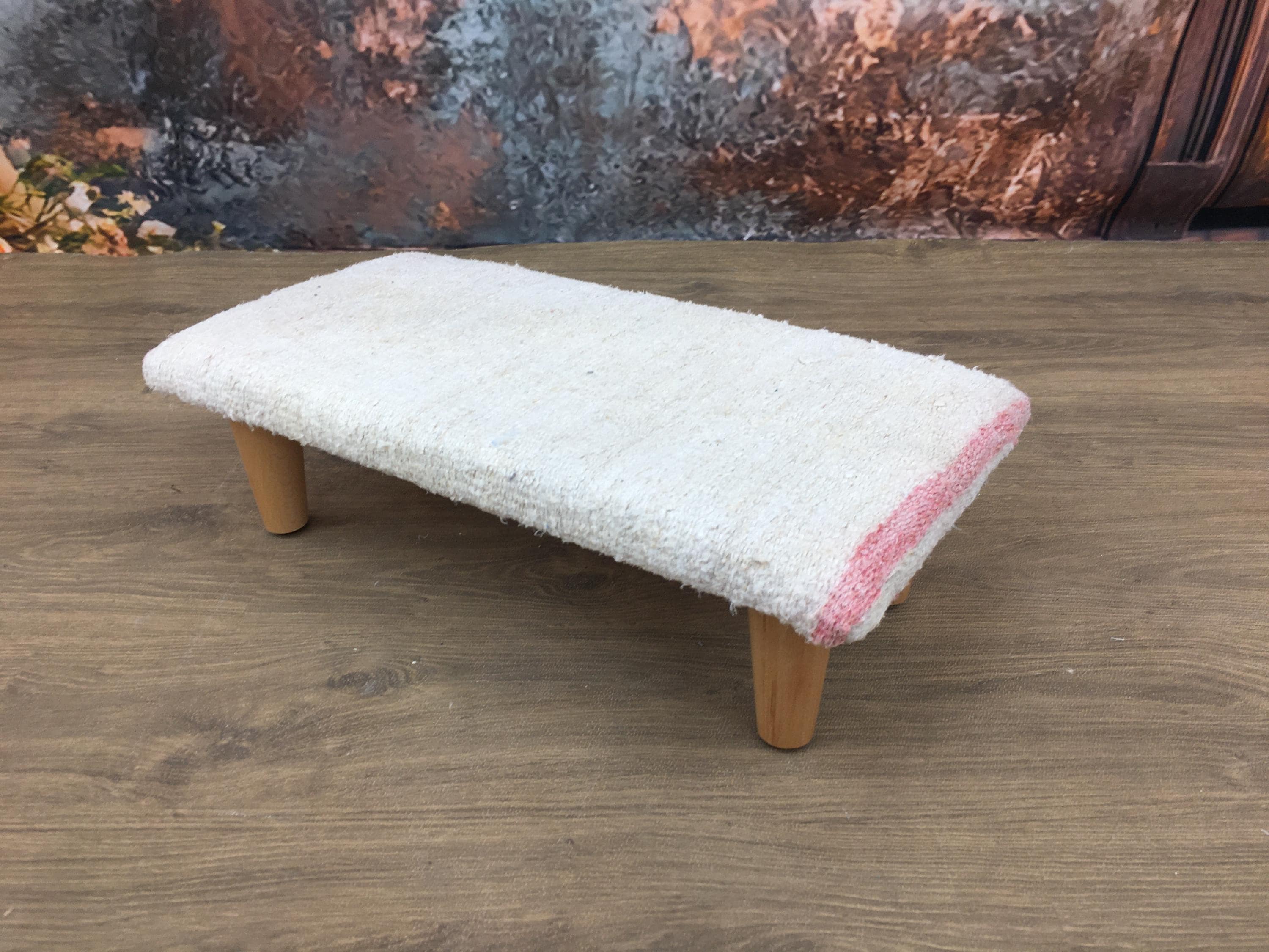 "Neutral kilim step stool, Handmade wooden step stool, Minimalist step stool, Cream turkish rug...