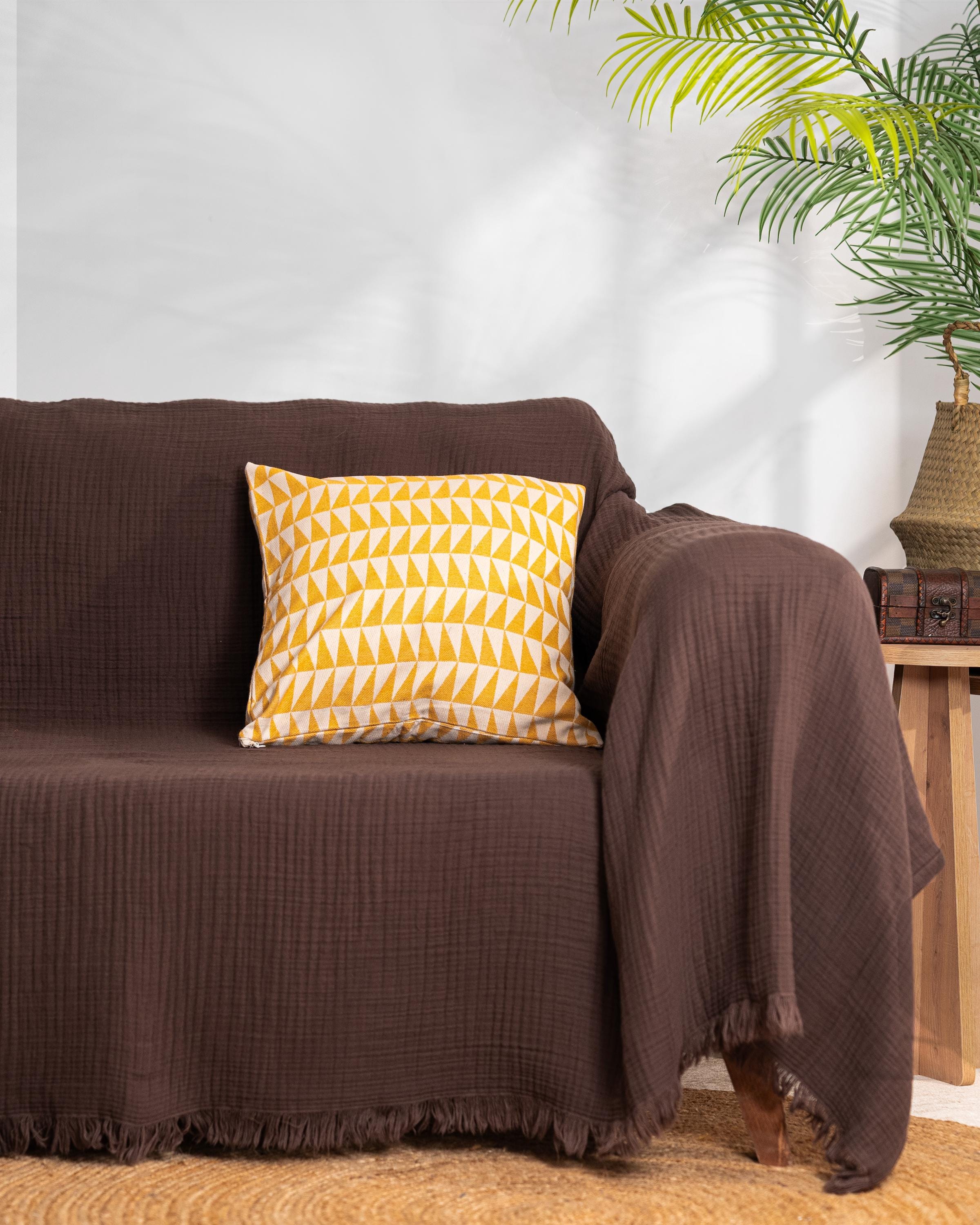 Organic Cotton Couch Cover -4 Layered Brown Muslin %100 Cotton Soft...