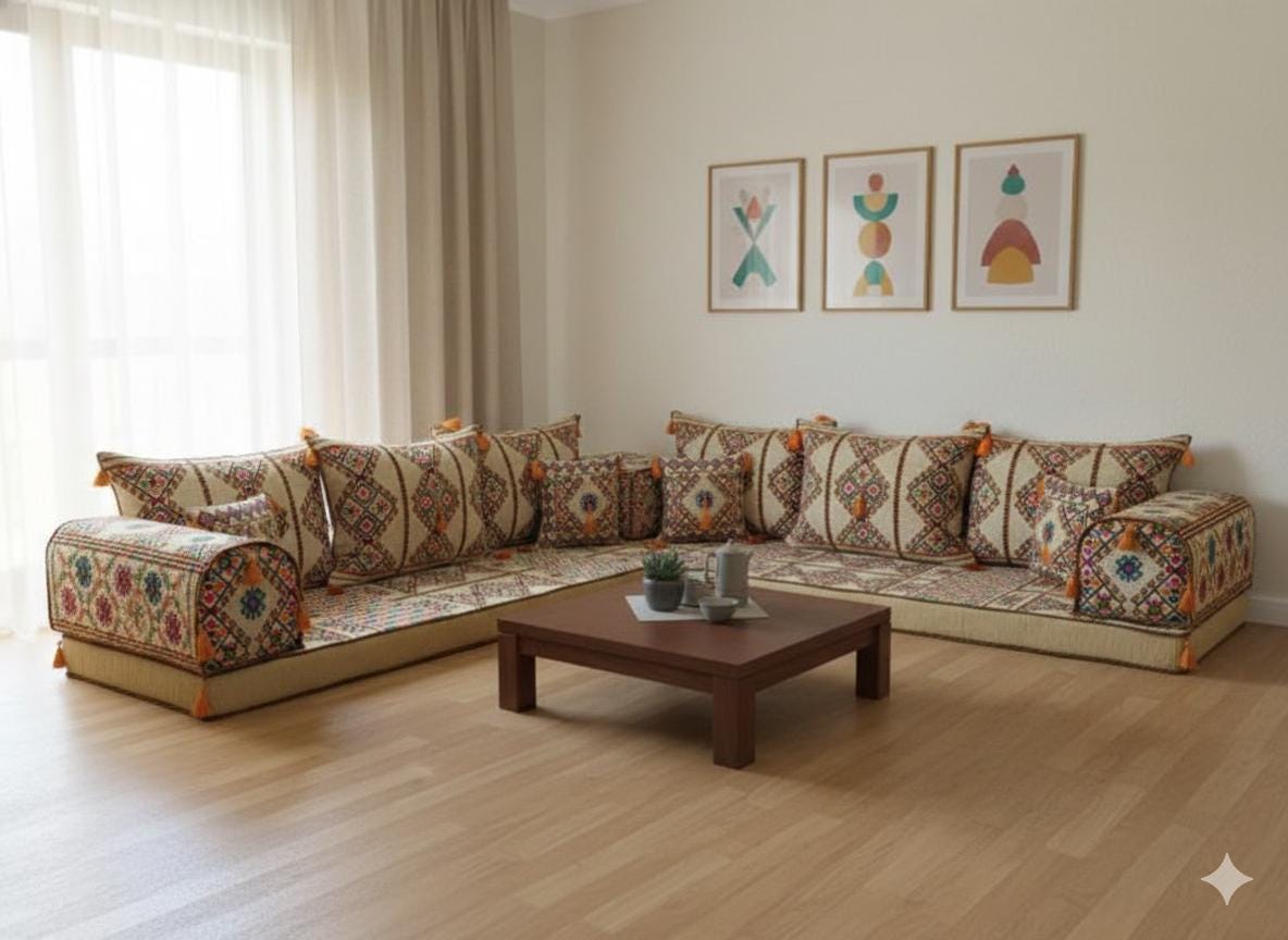 Transform your living space into a vibrant haven of comfort with this versatile bohemian majlis sofa...