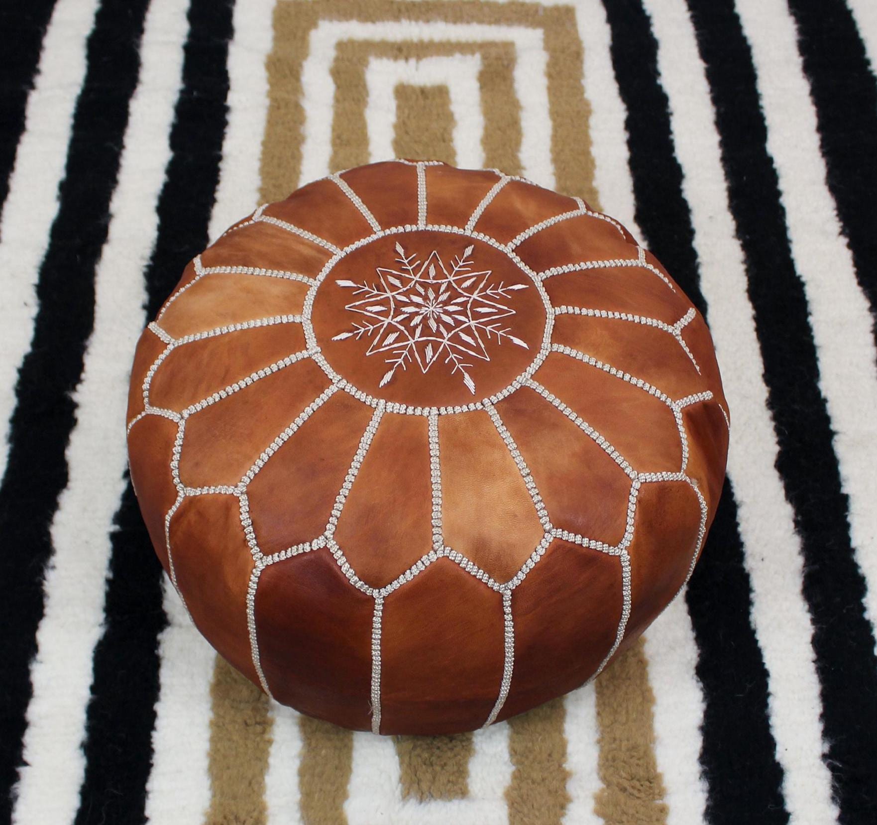 Moroccan Home decor leather ottoman Tan Brown pouf is the perfect Decor for any room in your home. H...